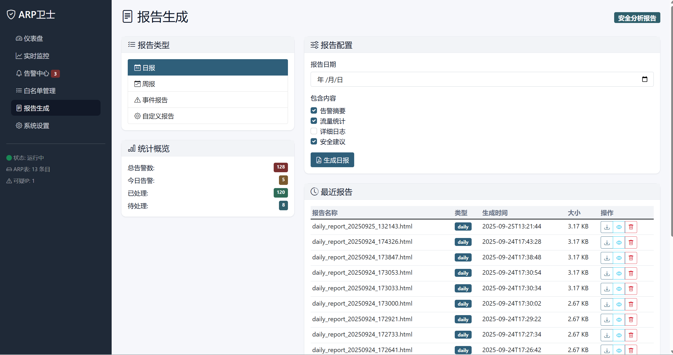 - 报告生成:自动生成日报、周报和安全分析报告