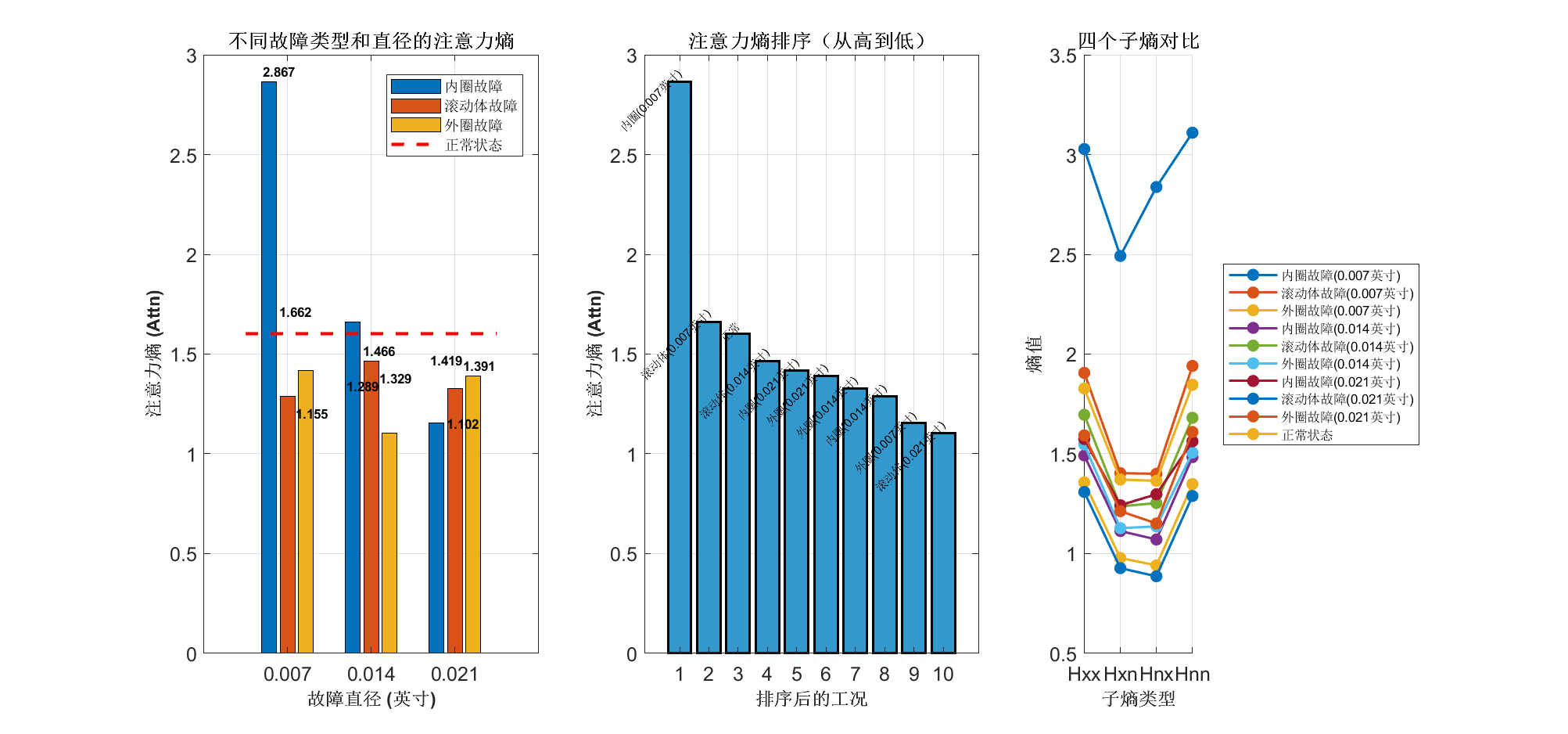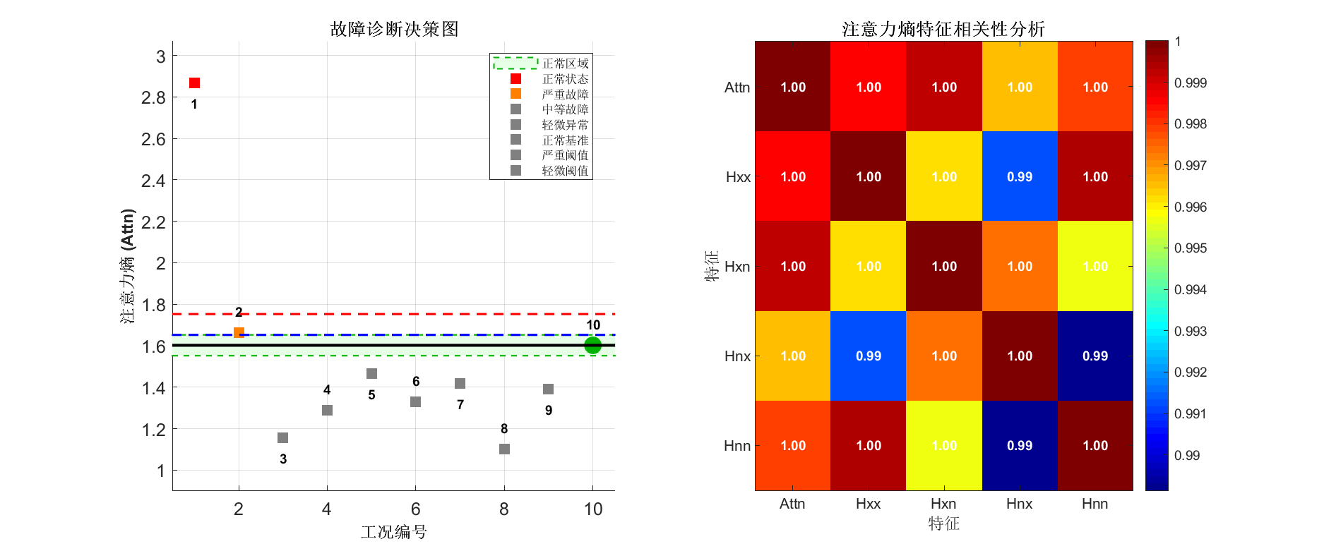 多尺度熵特征融合:算法不仅计算注意力熵(Attn),还同步提取四个子熵(Hxx、Hxn、Hnx、Hnn),形成多维特征向量,全面表征信号复杂度。