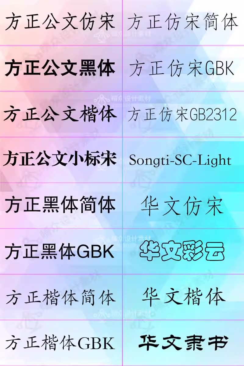 办公常用方正小标宋宋GB2312机关行政机构单位字体包下载PS素材