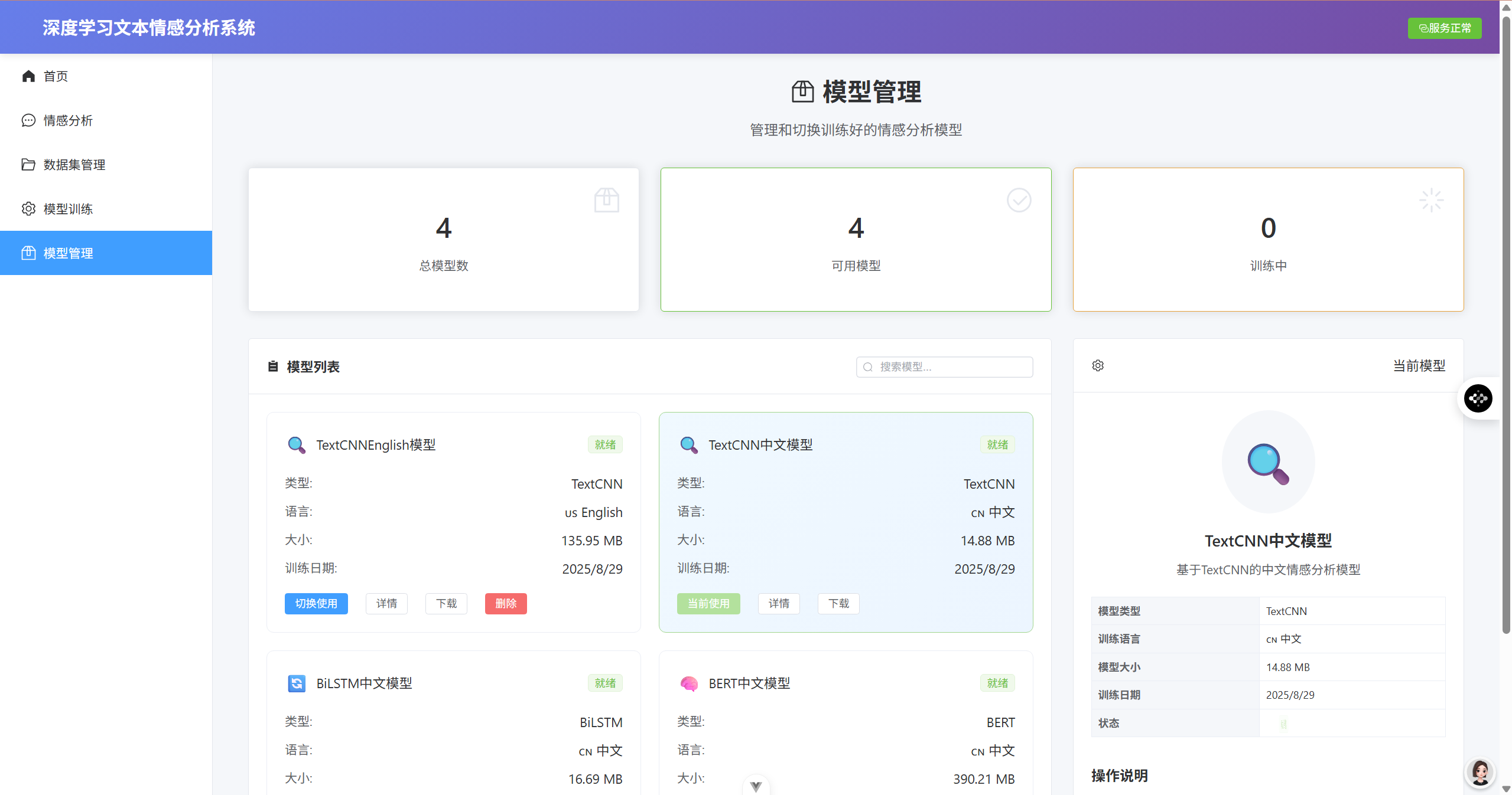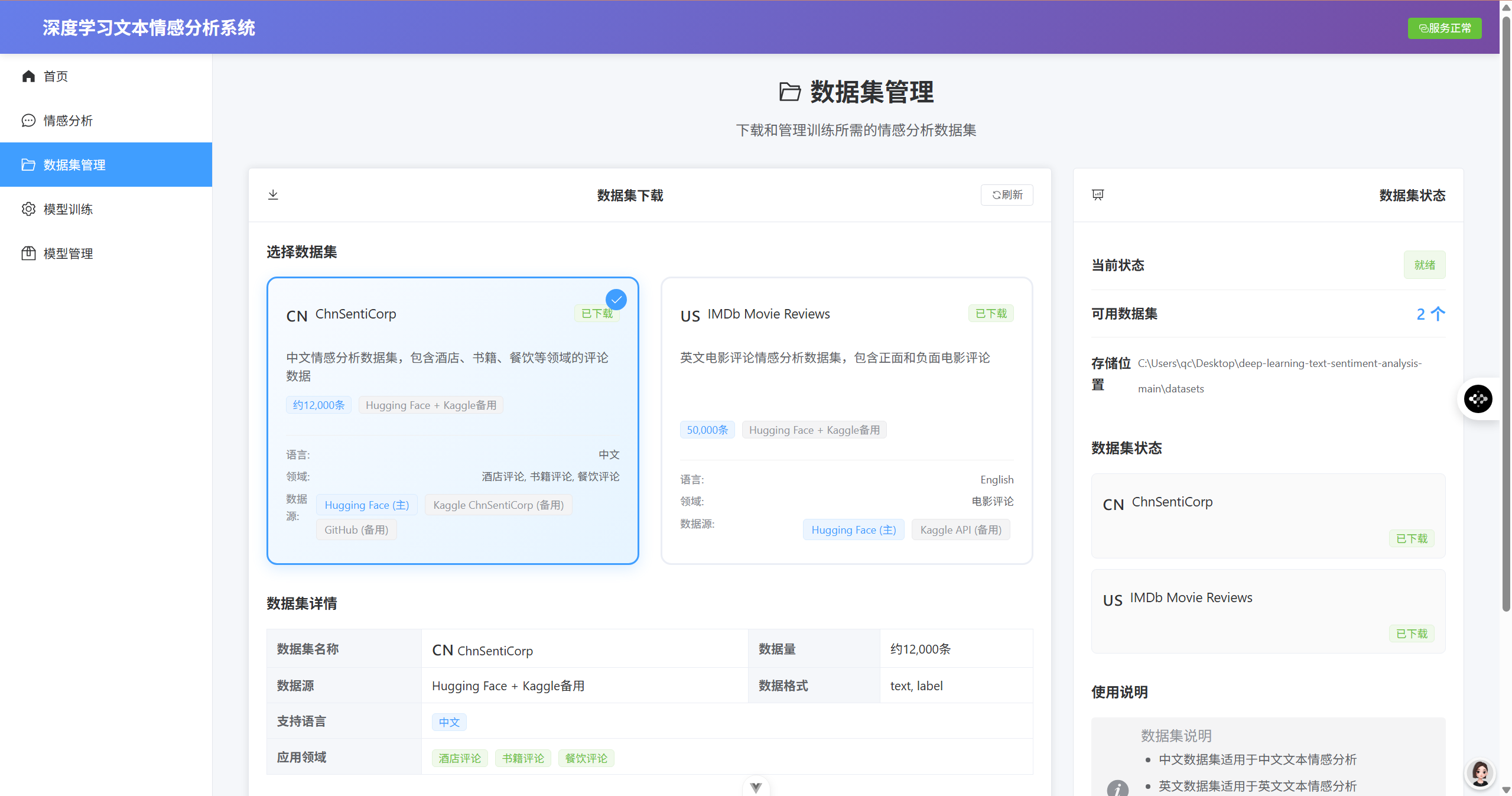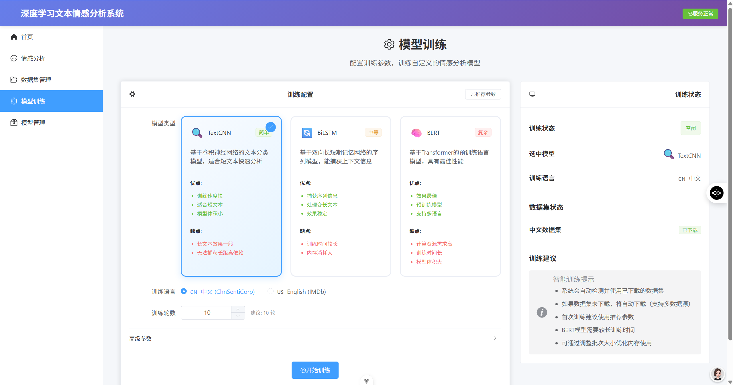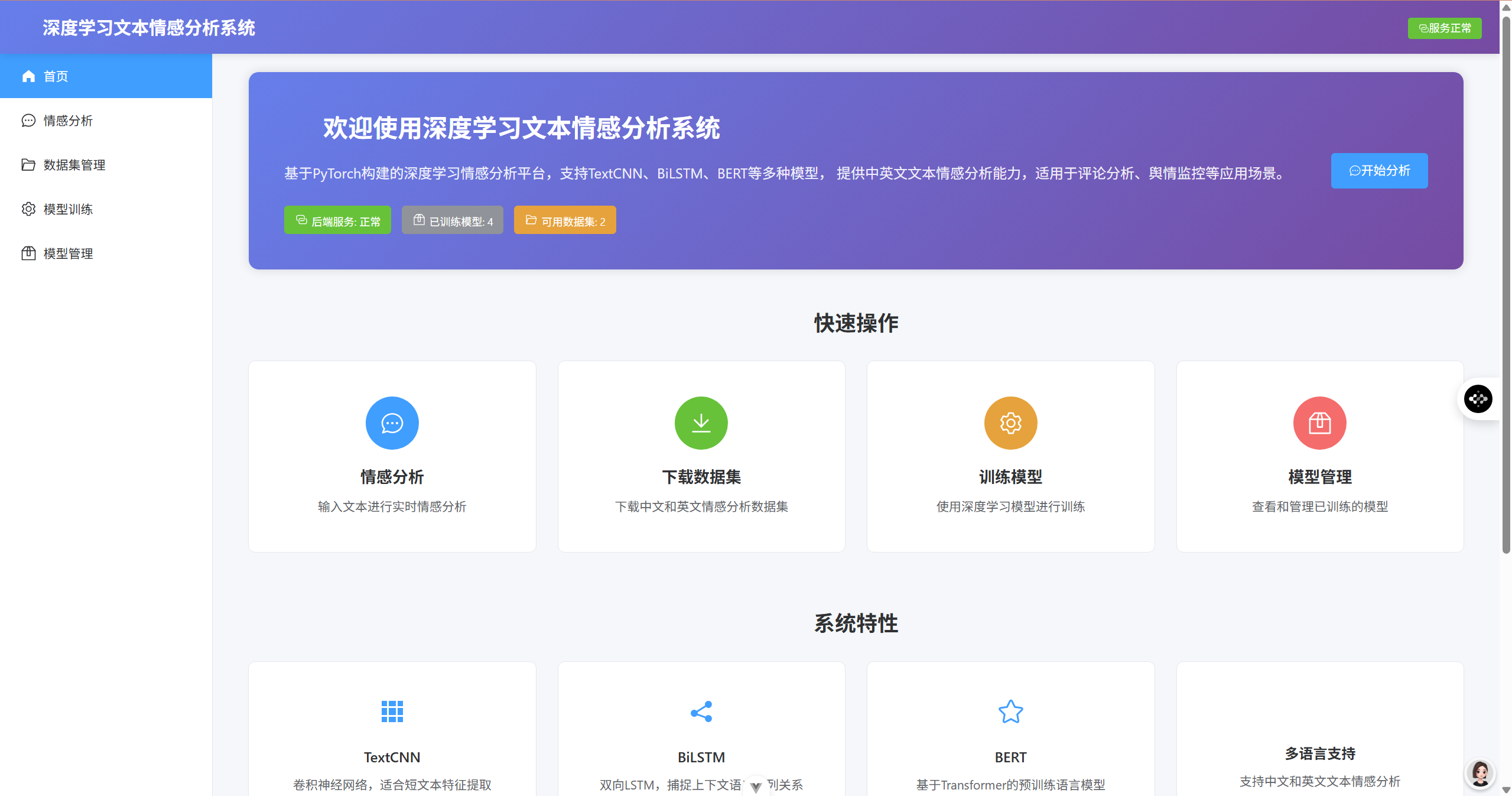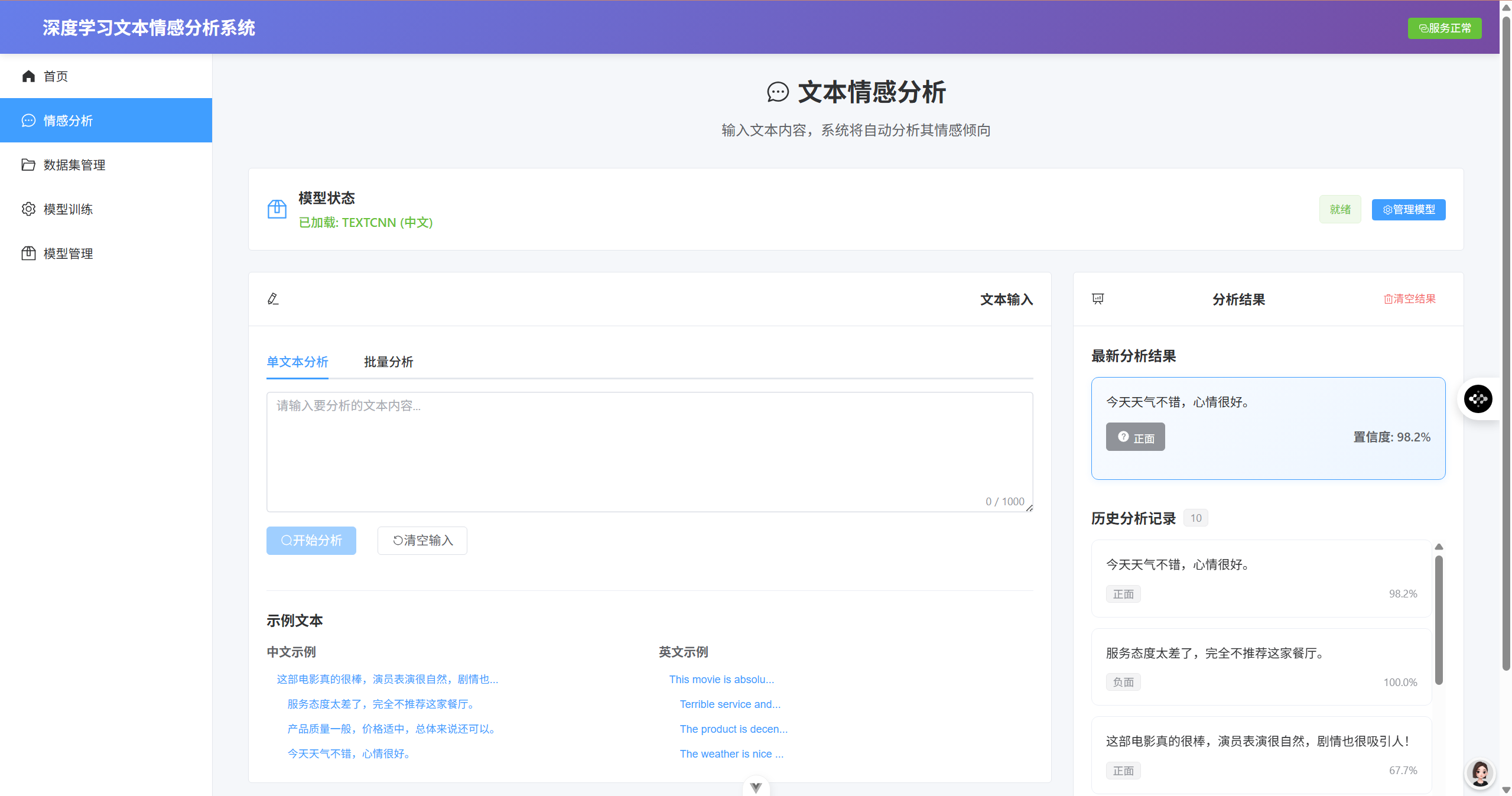 - ✅ 单文本情感分析(实时返回情感倾向和置信度)