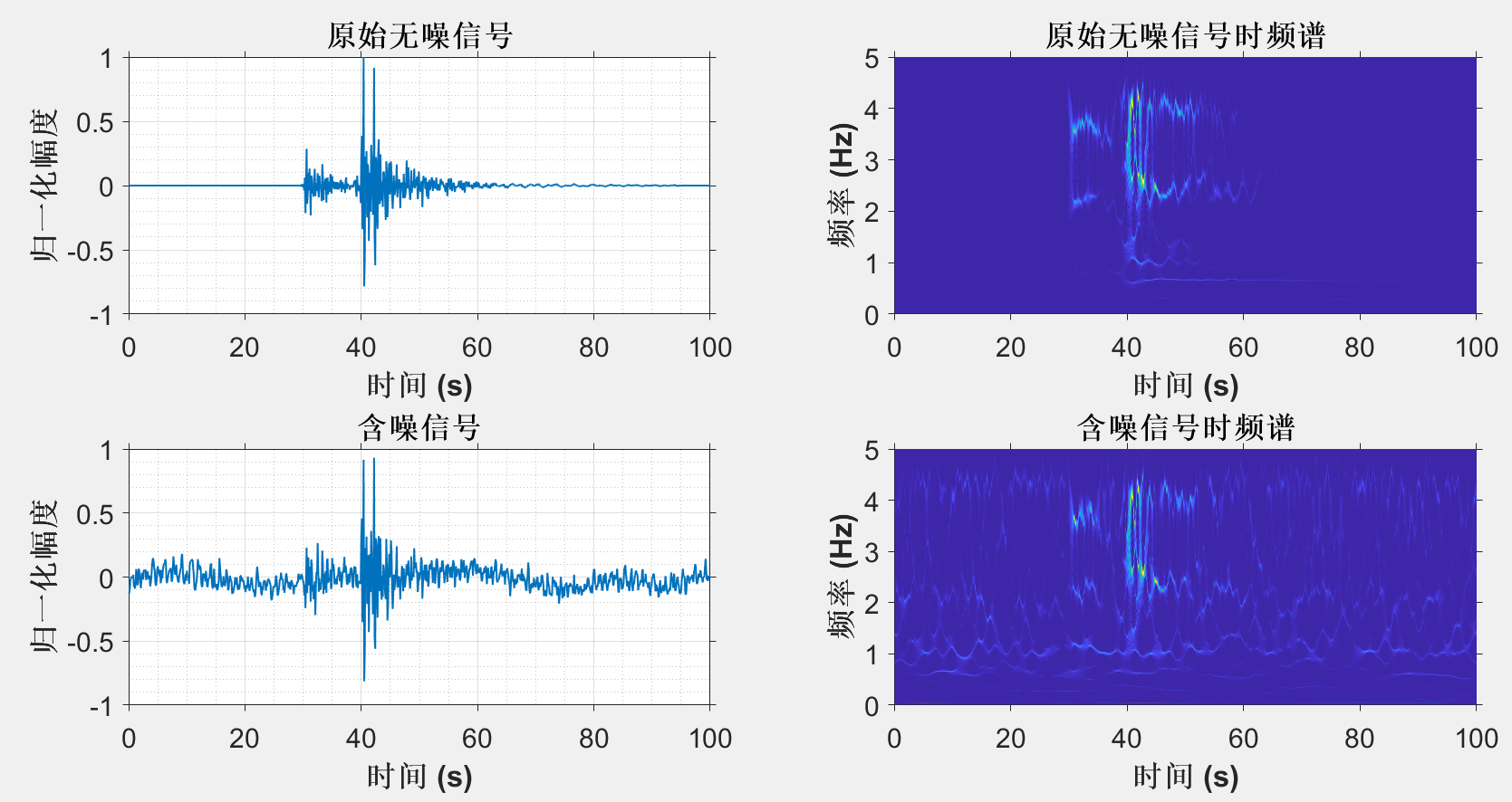 同时,对原始无噪信号 data_e 进行同样的 WSST,得到参考时频系数 noise_free_tf,用于后续对比和颜色轴标定。