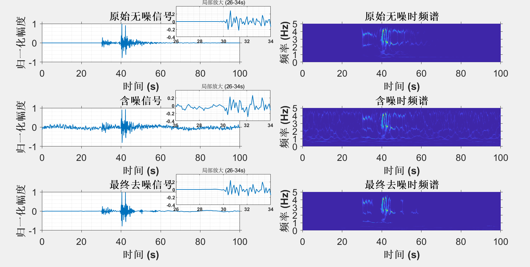 通过形态学操作(如连通域筛选、膨胀或腐蚀),生成优化的时频掩膜,并与原始时频系数结合,得到最终去噪时频系数 dn.final_tf。此过程能够有效保留信号的时频结构,同时进一步压制残留噪声。