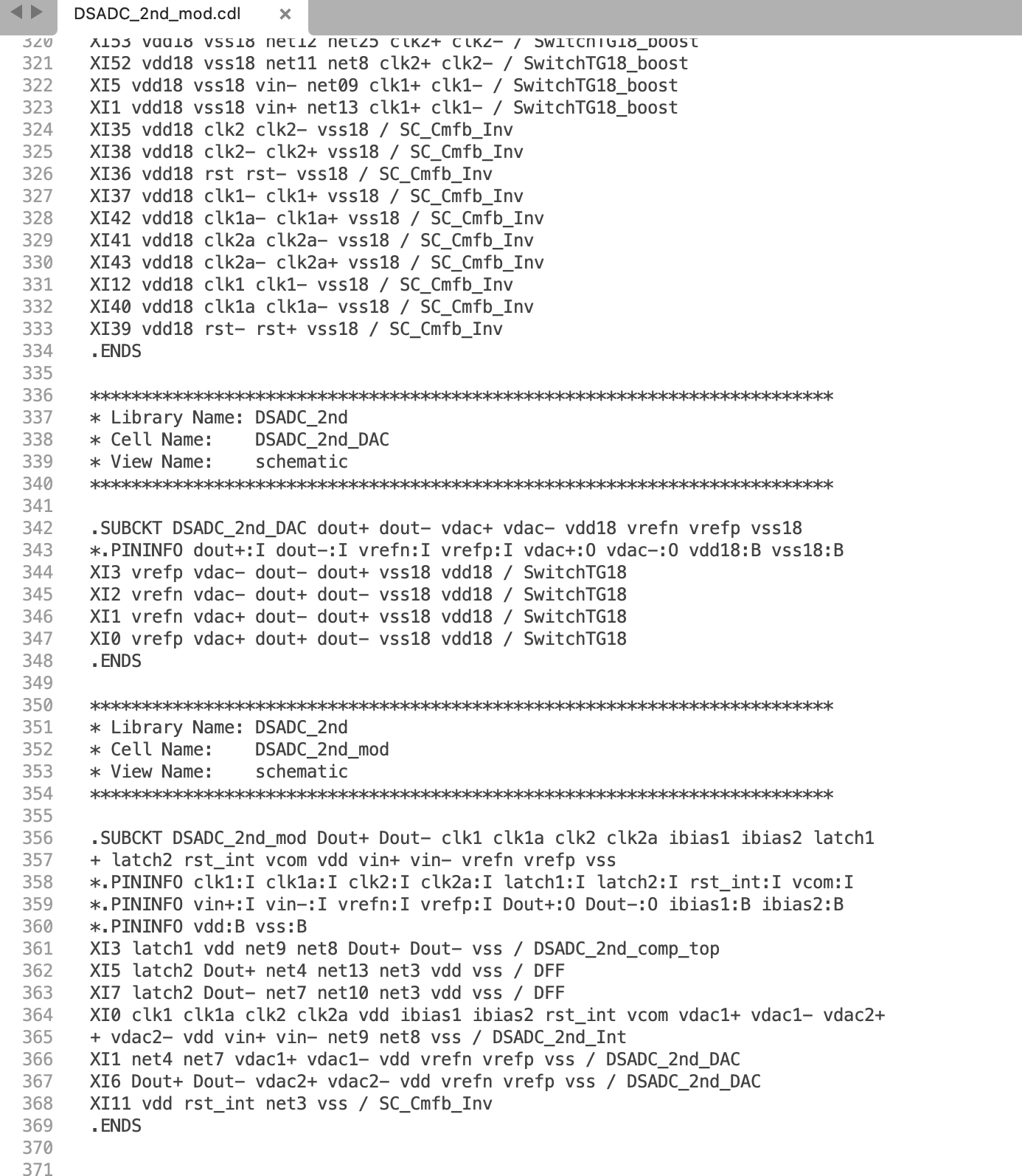 - 视频中所对应的二阶Delta-Sigma 调制器的完整网表(cdl格式)