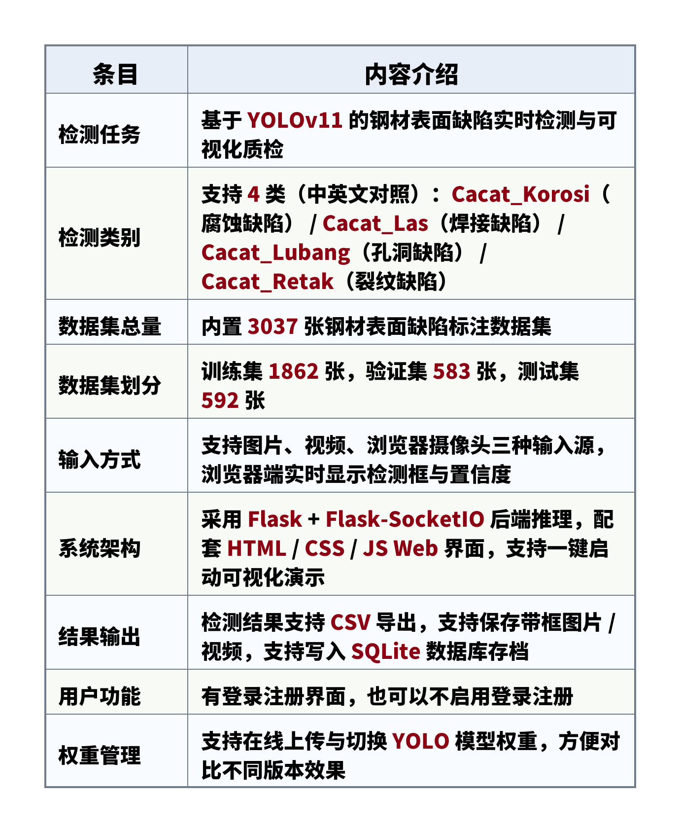 数据集总量:内置 3037 张钢材表面缺陷标注数据集