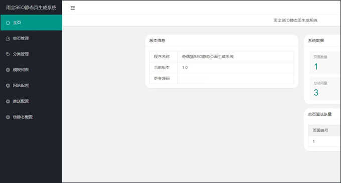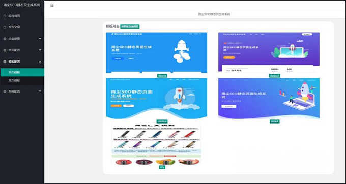 雨尘SEO静态页面生成系统PHP网站源码v1.3最新版本,支持文章采集,功能,多模板选择批量生成单页,本次更新增了百度自动推送和网站地图sitemap功能。
