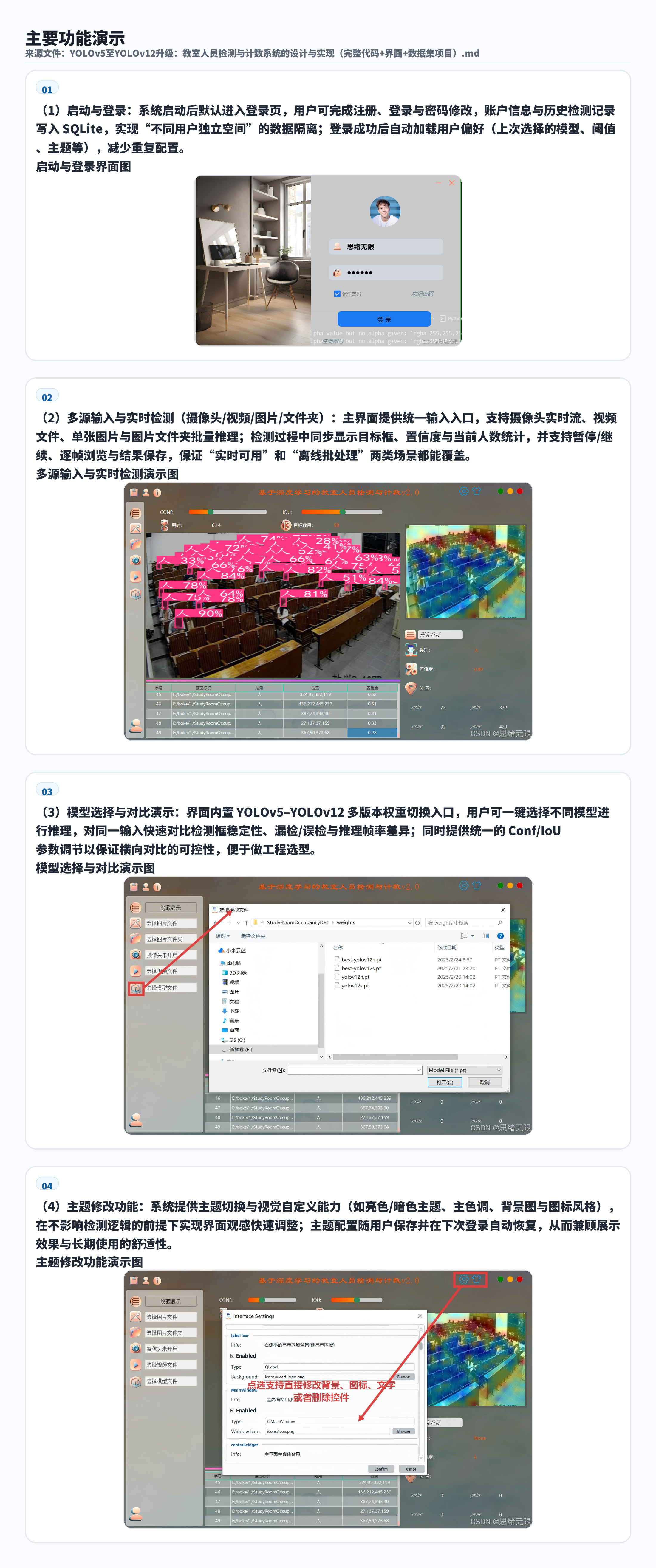 系统架构:采用 PySide6 构建可视化 UI 界面,集成模型推理、结果展示与交互操作,支持一键启动演示
