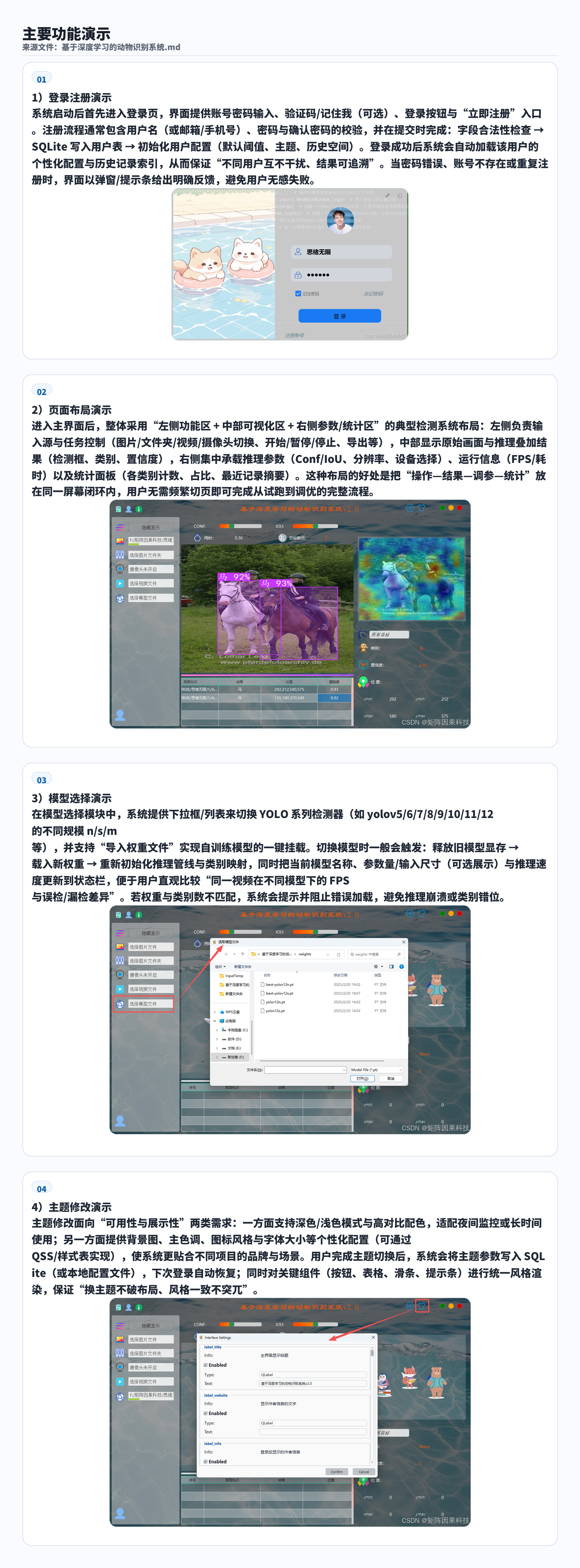 系统架构:采用 PySide6 构建可视化 UI 界面,集成模型推理、结果展示与交互操作,支持一键启动演示
