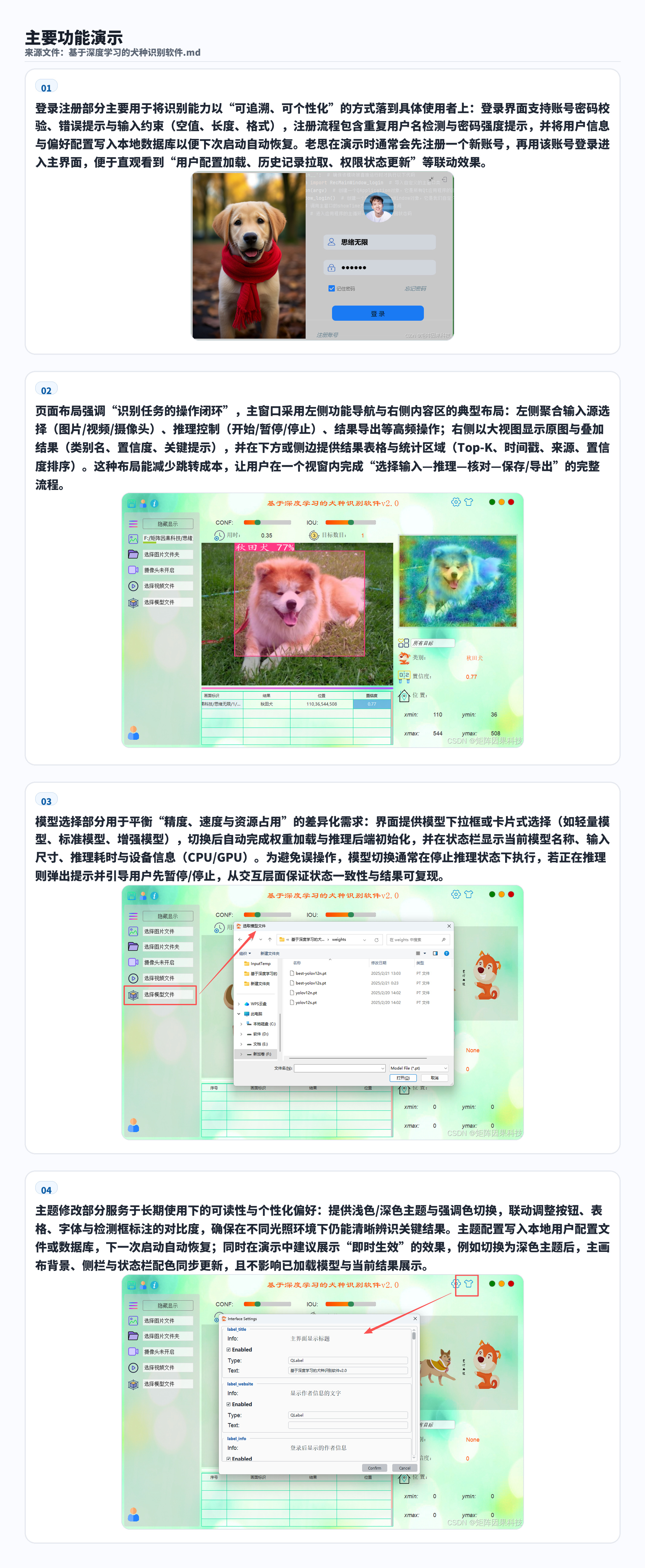 系统架构:采用 PySide6 构建可视化 UI 界面,集成模型推理、结果展示与交互操作,支持一键启动演示