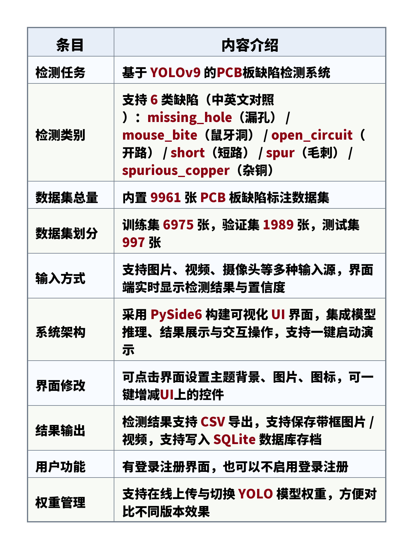 数据集总量:内置 9961 张 PCB 板缺陷标注数据集