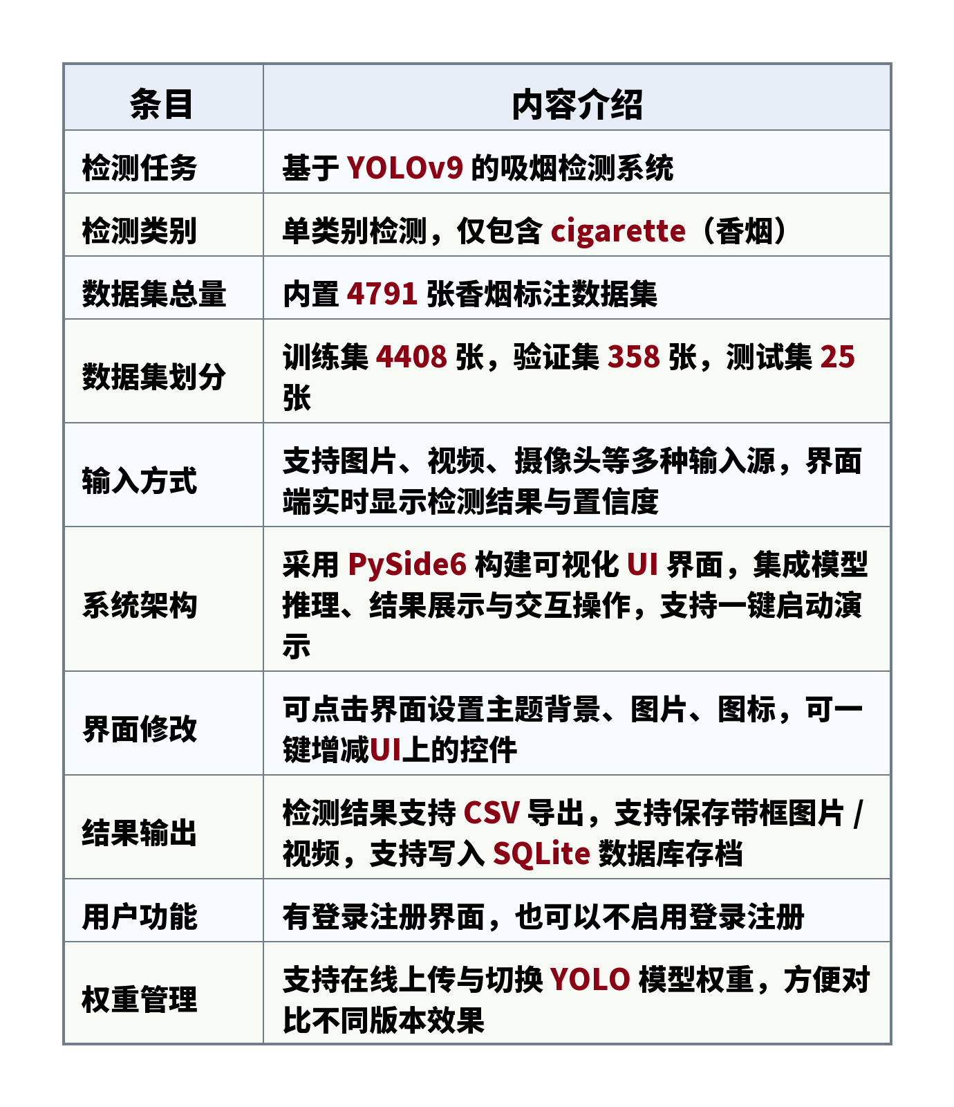 检测类别:单类别检测,仅包含 cigarette(香烟)