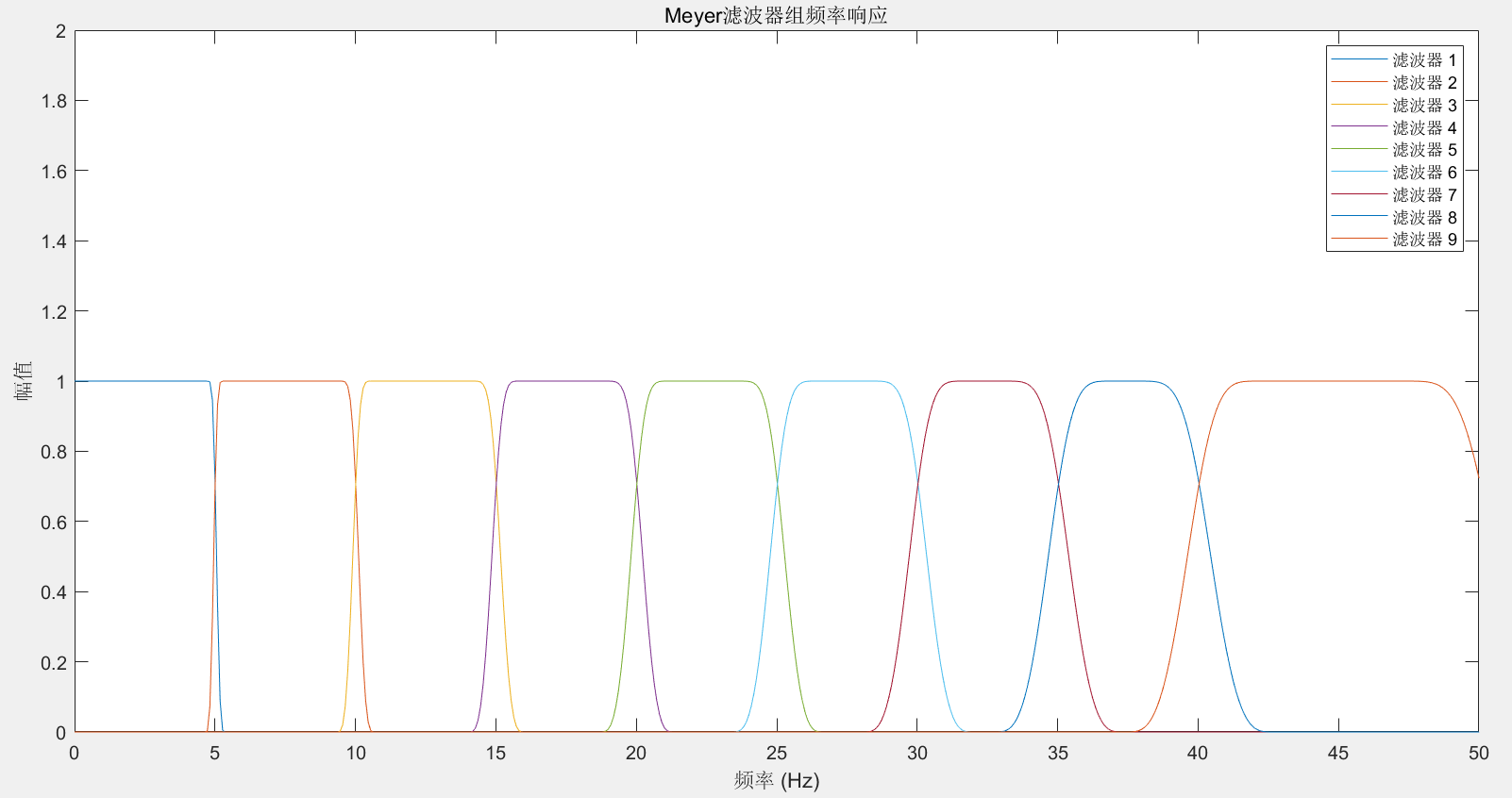 对中间每个频带(边界 k ~ 边界 k+1)构造 Meyer 小波(带通滤波器)。