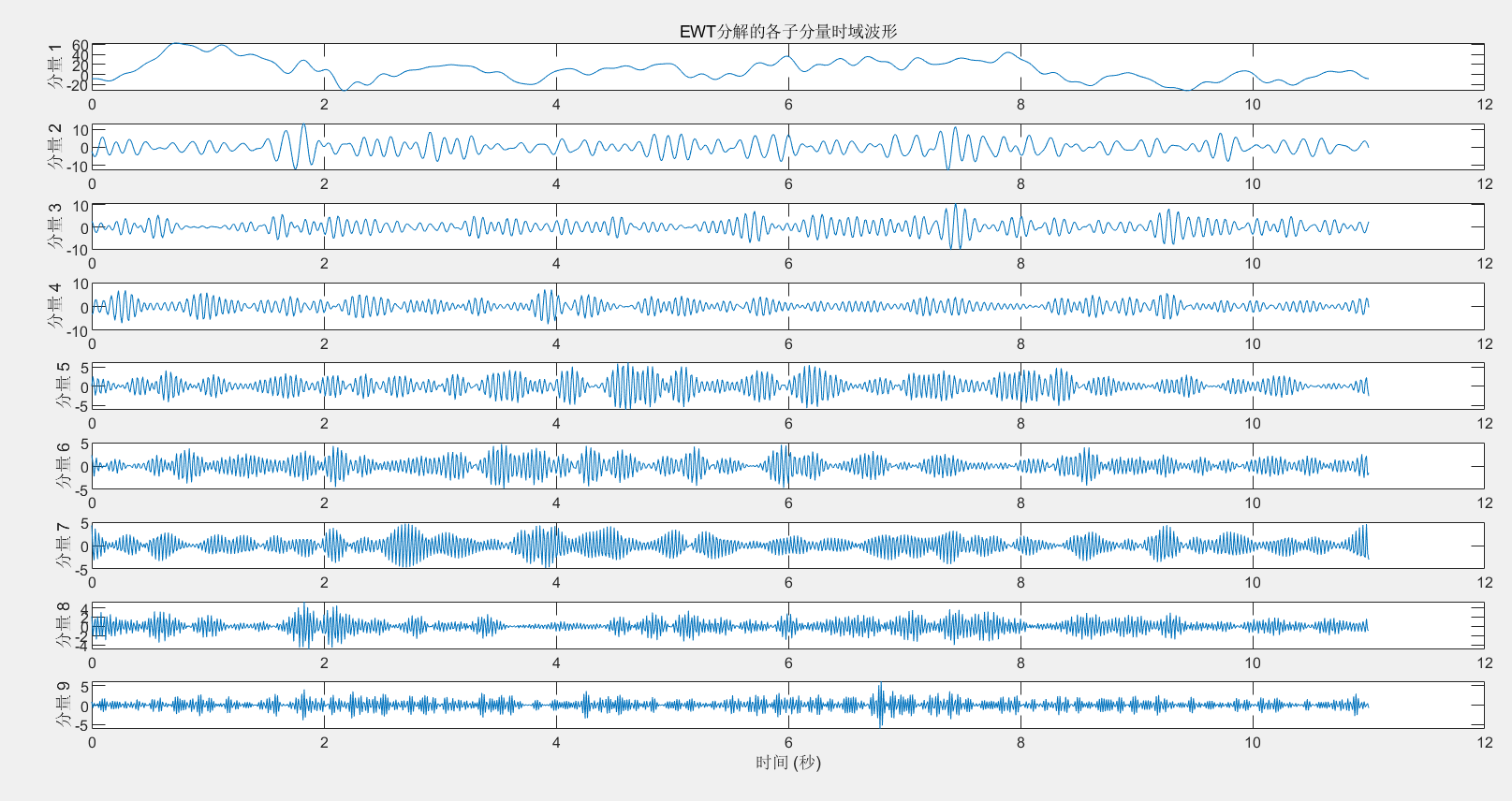 经验小波变换EWT是一种自适应信号分解方法。它借鉴了经典小波变换的数学框架,但不再依赖固定的小波基,而是根据信号自身的傅里叶频谱特性,自动将频谱划分成若干个连续的区间,并在每个区间上构造正交的小波滤波器组,从而将信号分解成一系列具有窄带特征的模态分量。相比经验模态分解,EWT 在数学上更严谨,避免了模态混叠和端点效应等问题。