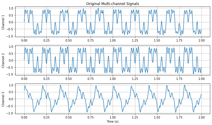 准备数据 把多个通道(传感器)的信号排成一个矩阵,每一行是一个通道,每一列是一个采样时刻。