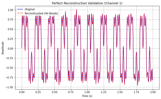 逐通道分解 对每一个原始通道的信号做傅里叶变换,然后用上一步设计好的滤波器组去乘它的频谱,再逆变换回来,就得到了这个通道的各个频段分量(即子带模式)。