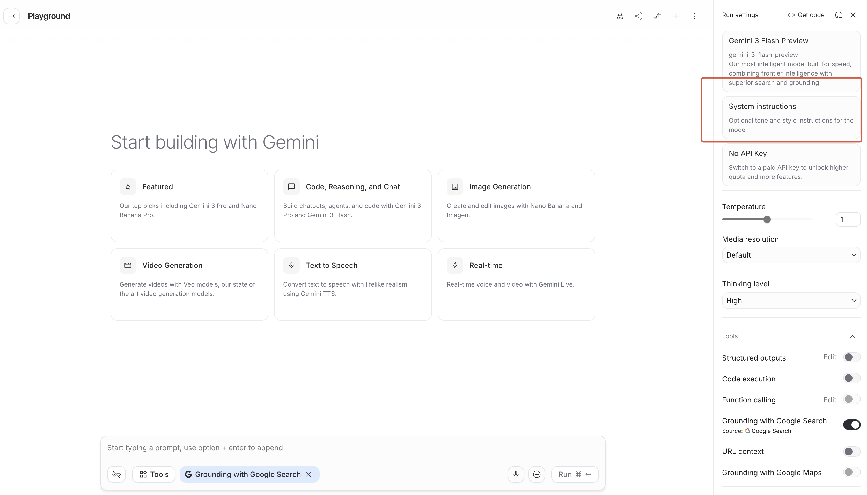 2、复制提示词到 system instructions