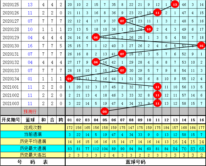 7、蓝球:最近10周蓝球号码012路比为3:4:3,前5周蓝球分别开出:0路、0路、2路、1路、1路、和2路,本期蓝球排除0路号码,关注蓝球号码05、08、13、14。
