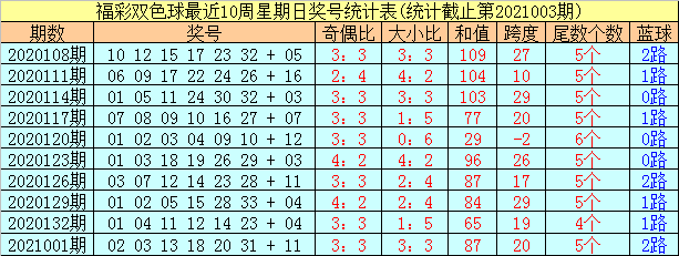 福彩双色球第2021003期奖号为:06、09、16、18、22、29+11,其中红球奖号奇偶比为2:4,大小比为3:3,和值为100,跨度为23,包含同尾红球06 16、09 29,蓝球开出2路奖号。
