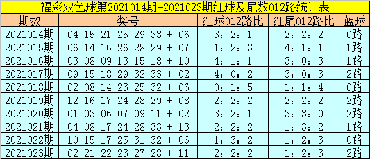 福彩双色球第2021024期红球尾数012路分析: