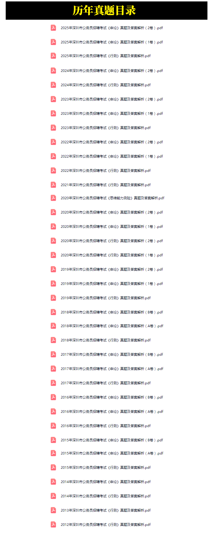 2012年-2025年深圳市市考公务员招聘考试笔试真题36套