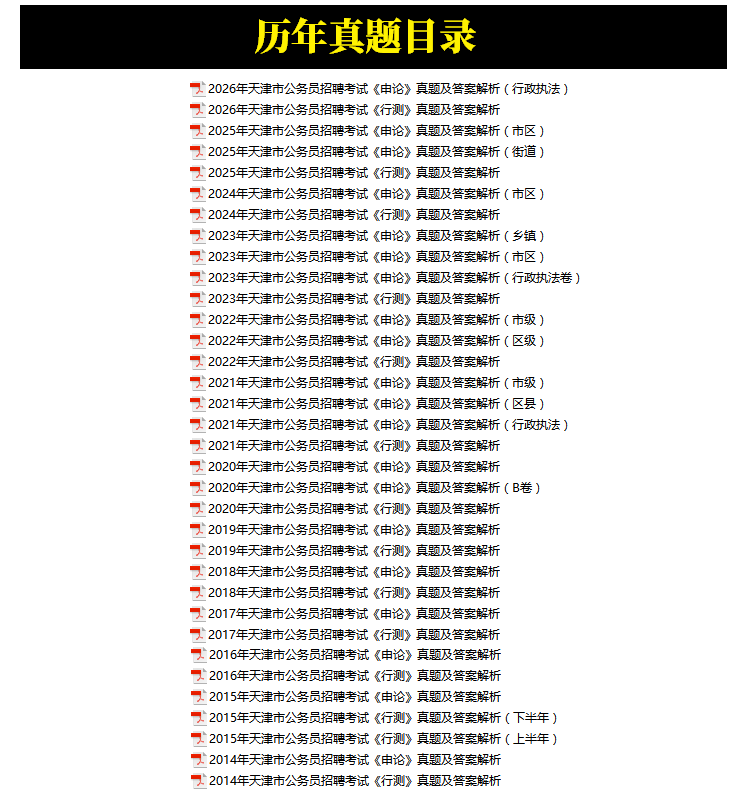 2014年-2026年天津市公务员招聘考试笔试历年真题34套(持续更新)