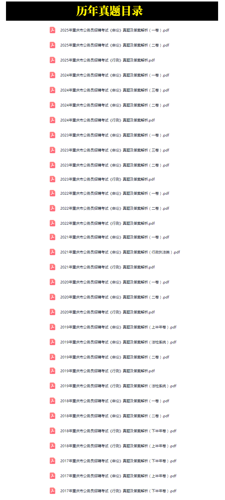 2013年-2025年重庆市公务员招聘考试笔试历年真题46套(持续更新)