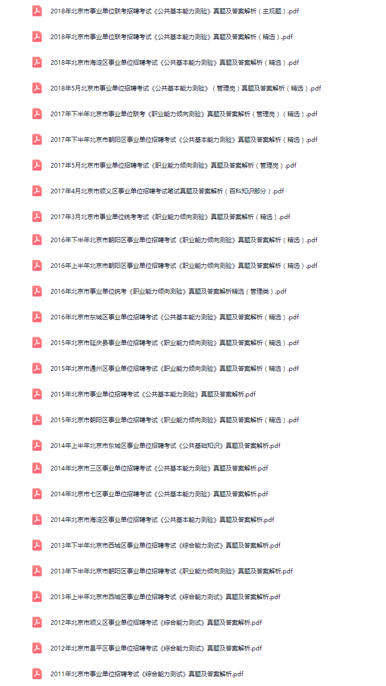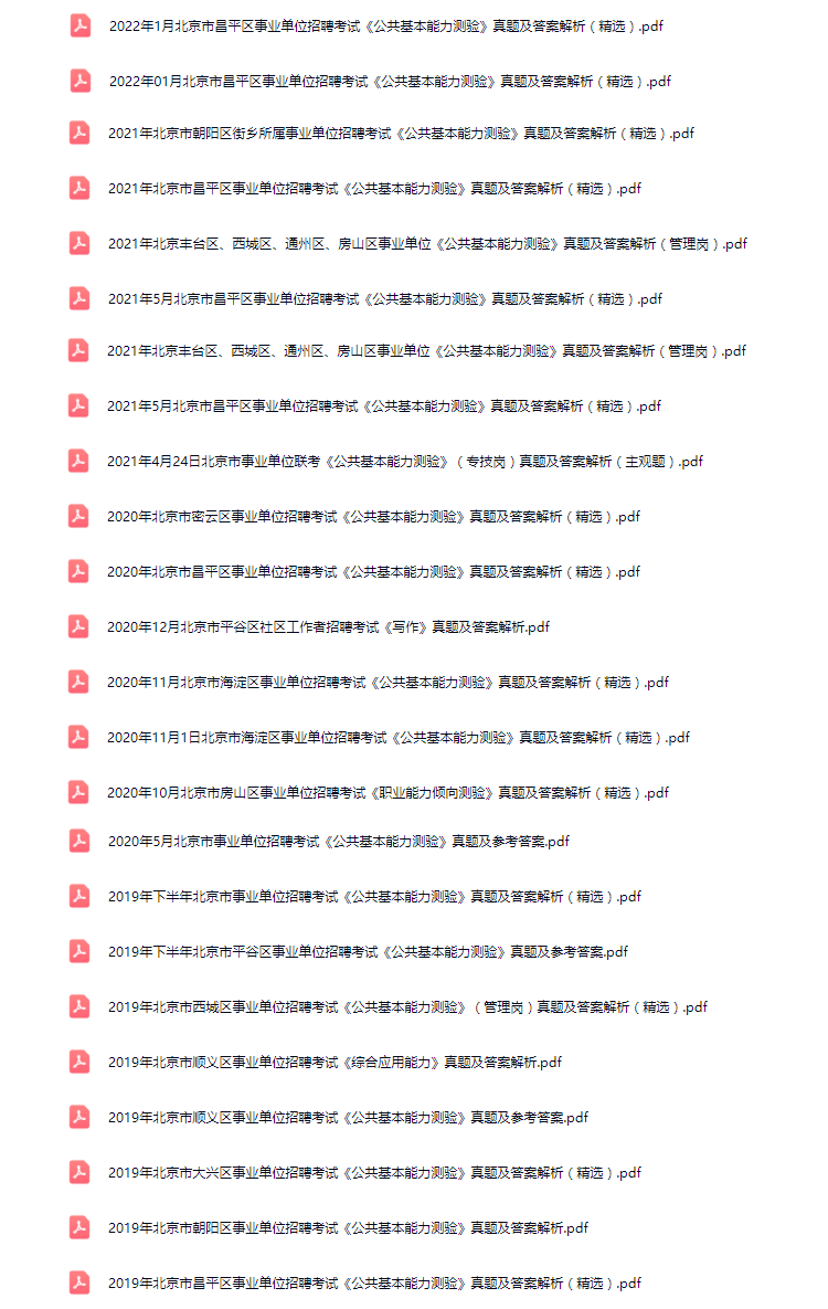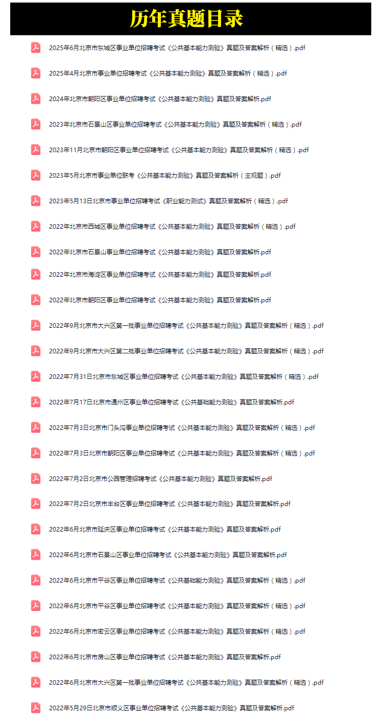 2011年-2025年北京市事业单位招聘考试笔试历年真题73套
