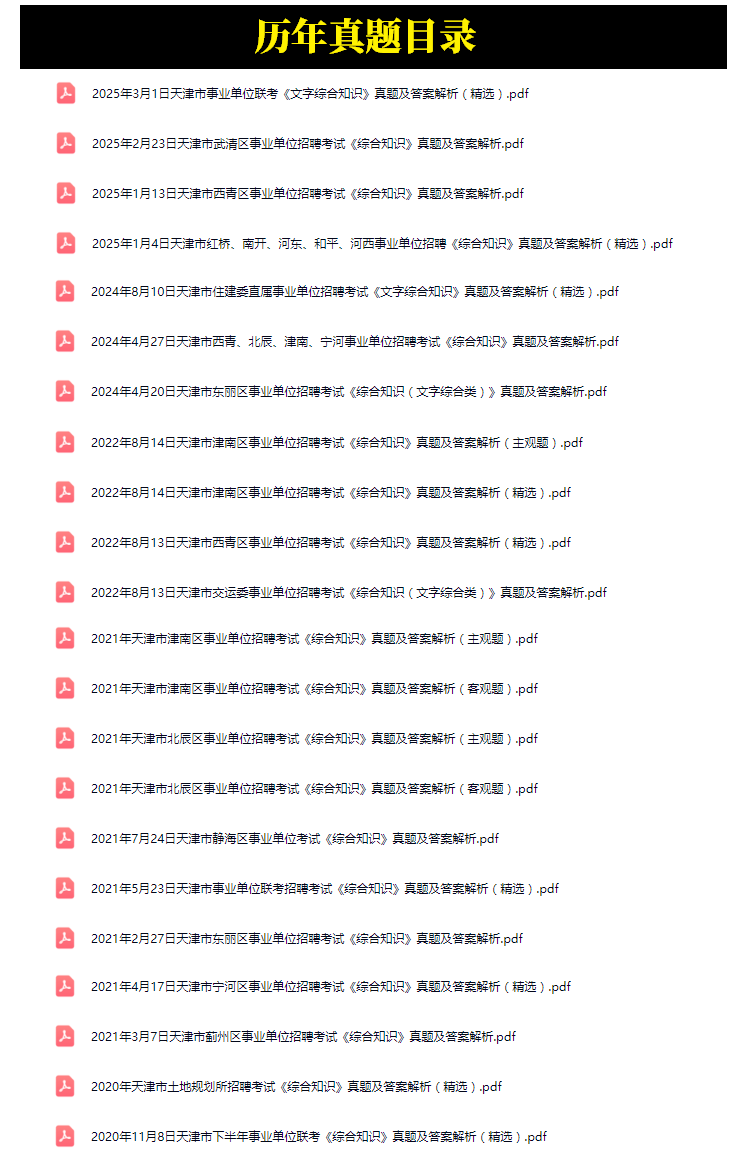 2011年-2025年天津市事业单位招聘考试《综合知识》笔试真题48套(持续更新)