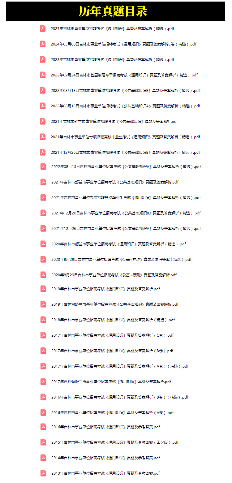 2013年-2025年吉林市事业单位招聘考试笔试历年真题25套(持续更新)