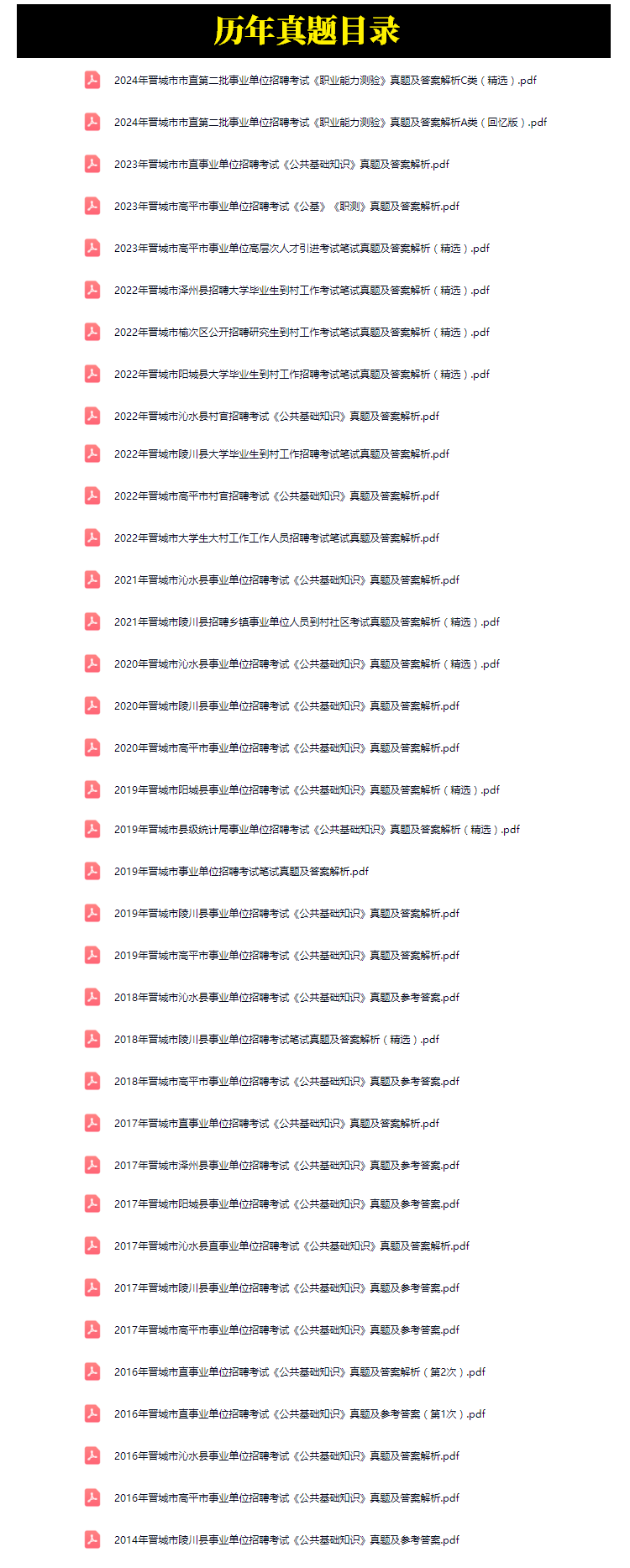 2014年-2024年晋城市事业单位招聘考试笔试真题36套