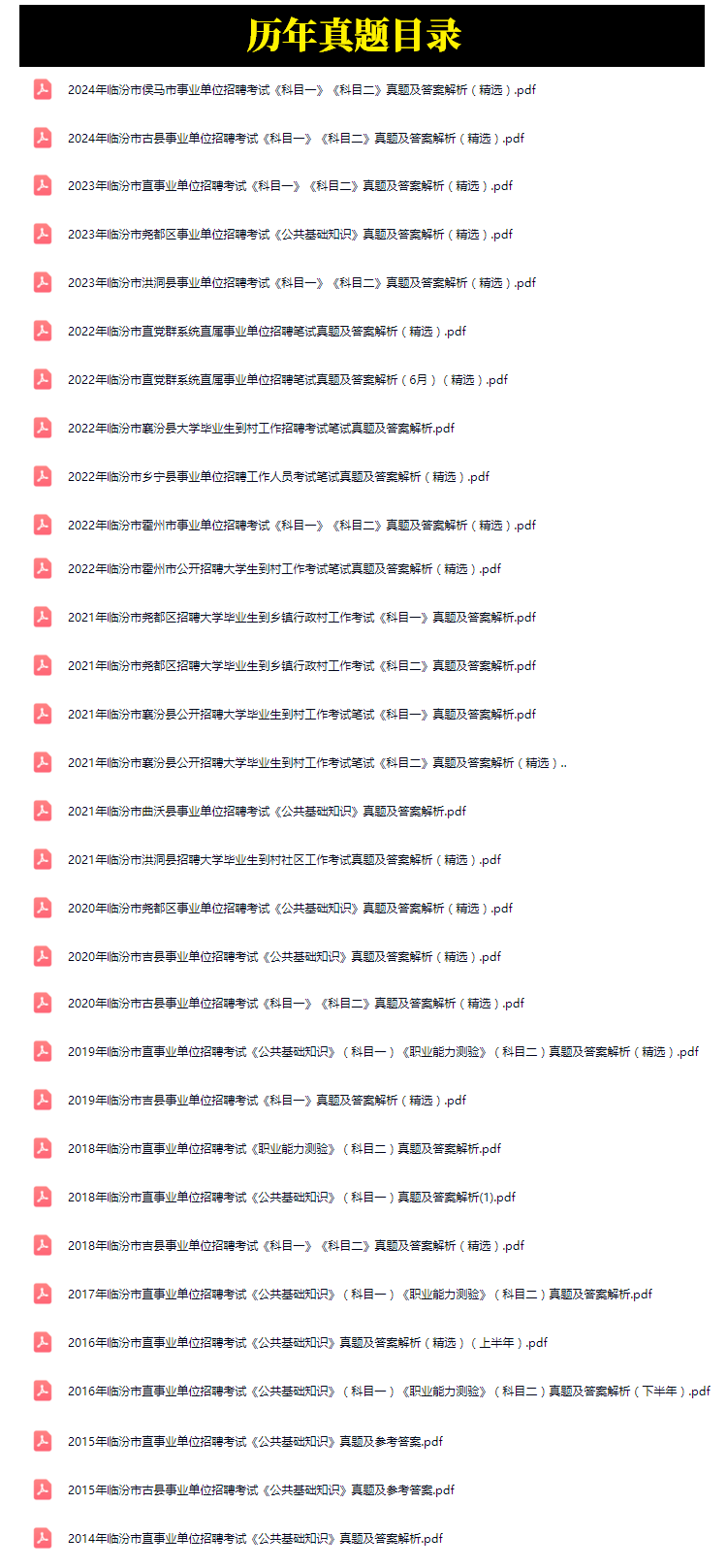 2014年-2024年临汾市事业单位招聘考试笔试真题31套