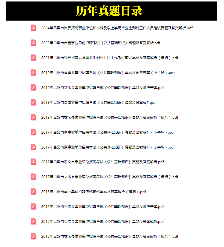 2015年-2024年吕梁市事业单位招聘考试笔试真题15套