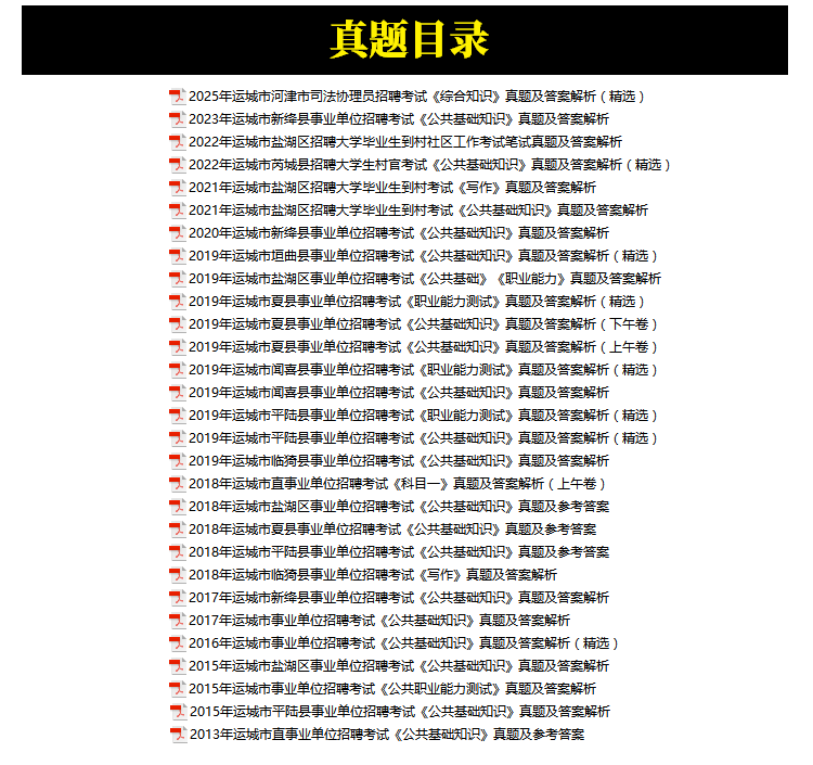 2013年-2025年运城市事业单位招聘考试笔试真题27套