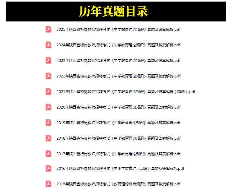 2015年-2025年陕西省中学特岗教师招聘考试笔试历年真题11套