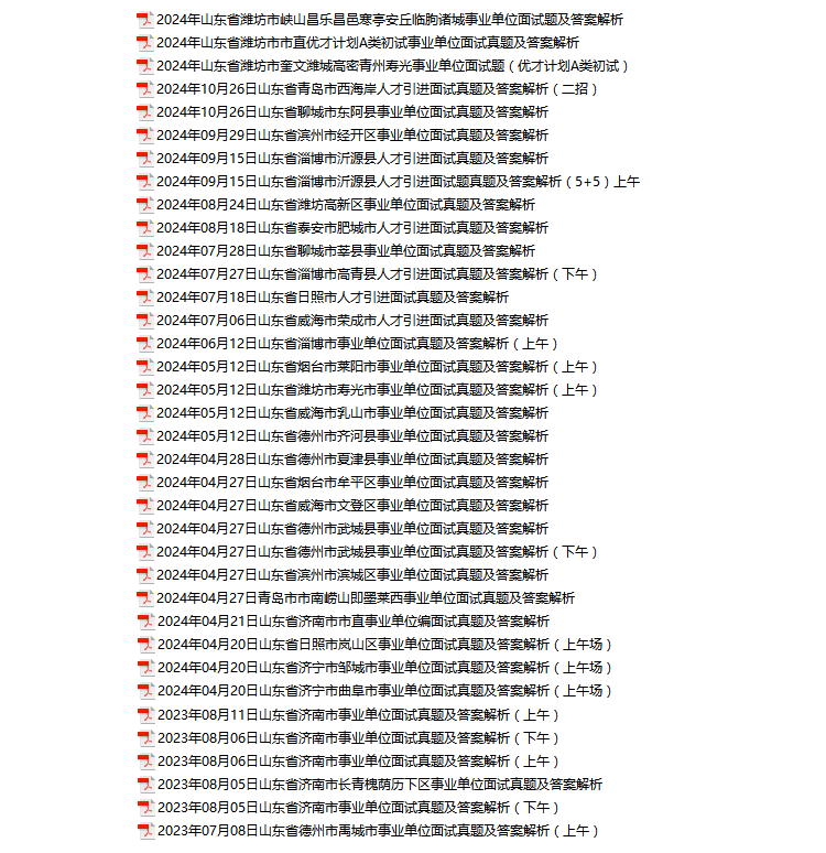 2018年-2024年山东省事业单位招聘考试面试真题280套(持续更新)