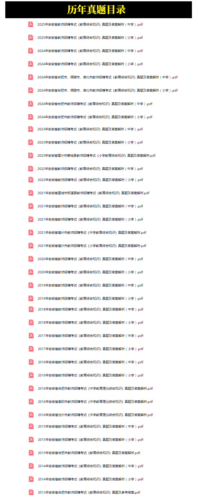 2013年-2025年安徽省中小学教师招聘考试笔试历年真题38套(持续更新)