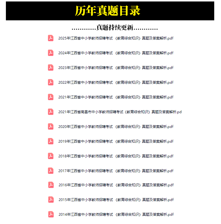 2014年-2025年江西省中小学教师招聘考试笔试历年真题13套(持续更新)