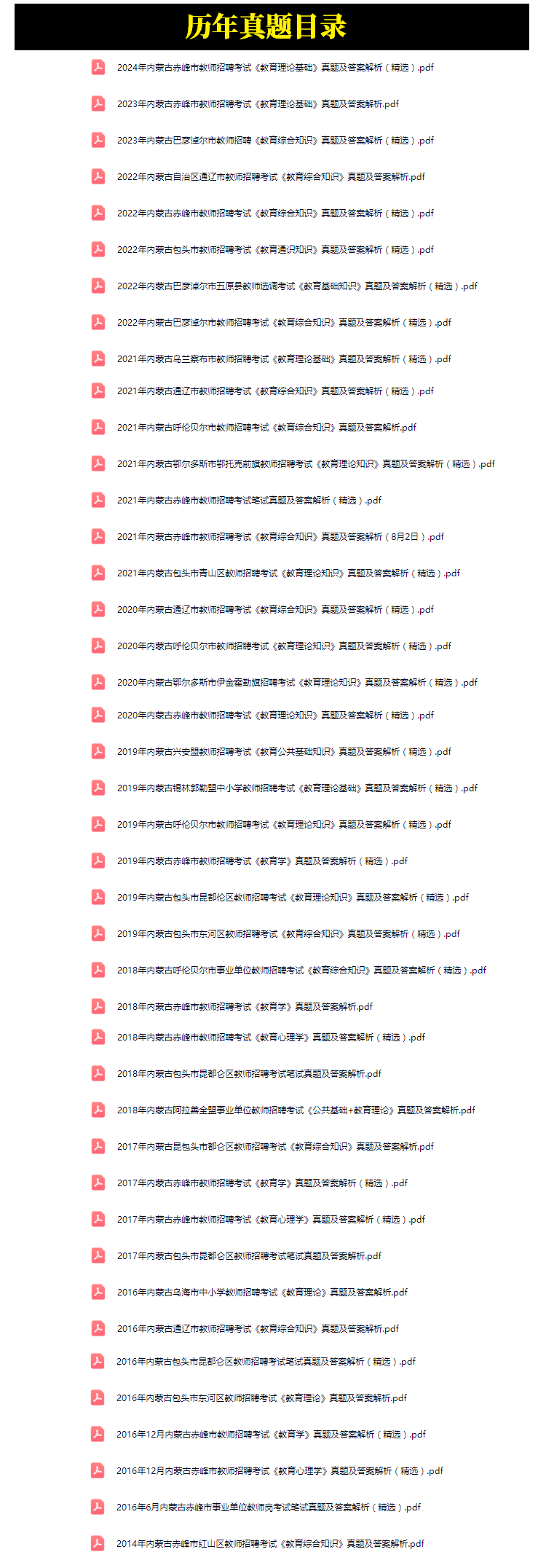 2014年-2024年内蒙古中小学教师招聘考试笔试历年真题42套