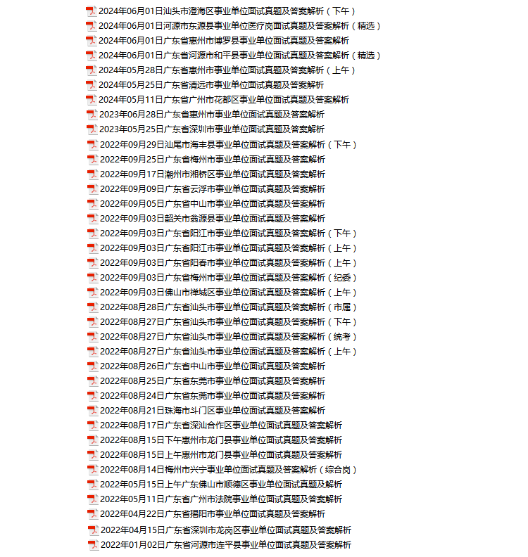 2015年-2024年广东省事业单位招聘考试面试真题139套(持续更新)