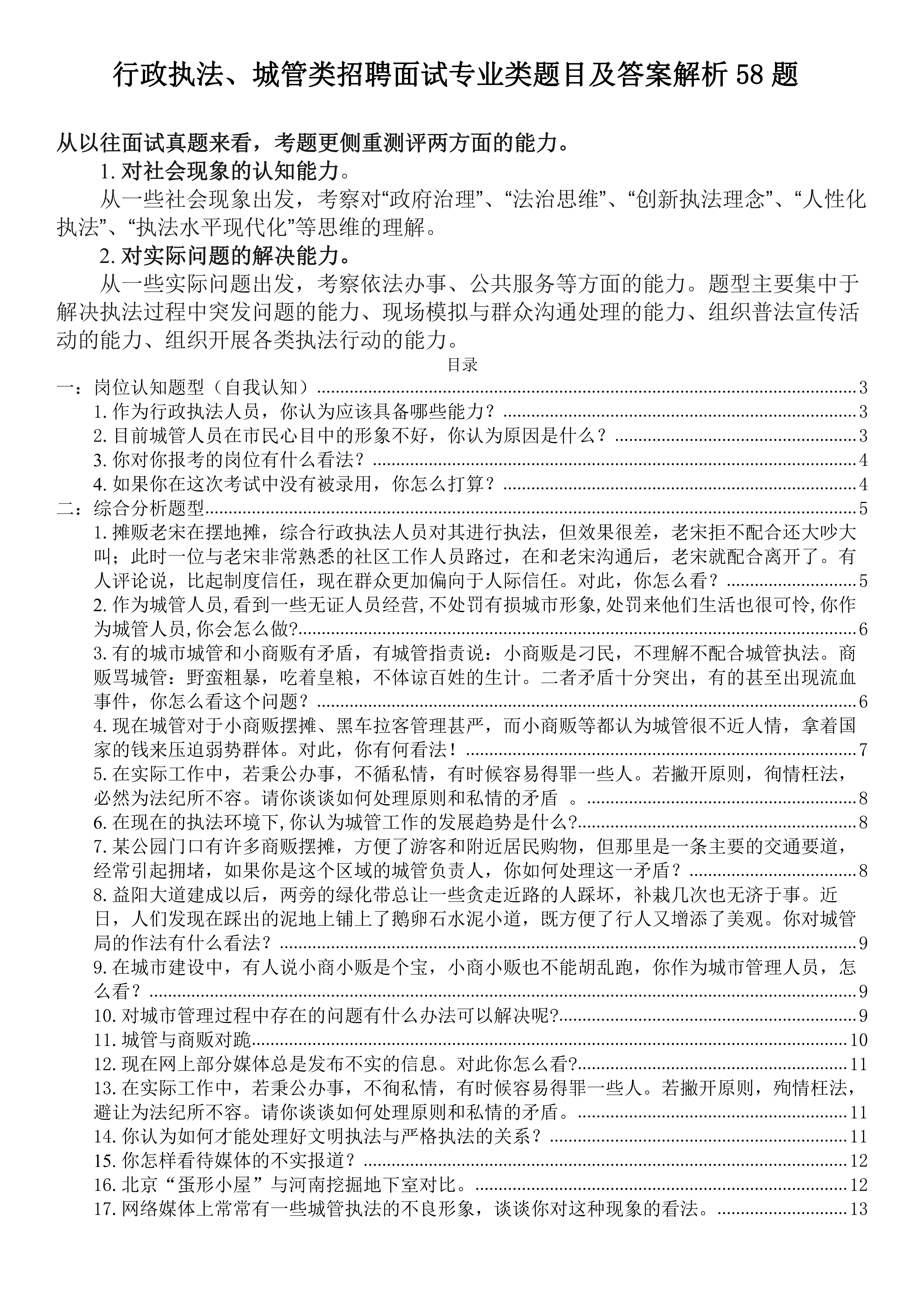 行政执法、城管类招聘面试专业类题目及答案解析58题,购买后在附件里下载。