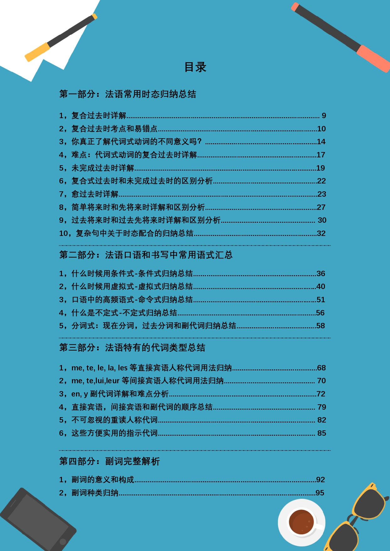 在投入了大量时间和精力后,我很开心这本书有了最终的模样,我想给大家呈现出一本有意义的书,一本能改变法语学习者的书,一本能激发读者学习动力、值得信赖的书。最后,我想对正在读这段话的你说:如果你选择了学习法语,愿你能够相信:法语一定会给你的职业生涯和个人发展带来更多可能性,而任何时候下定决心去提高一门语言都不会晚。希望大家尽情享受法语学习之旅,在法语学习的过程中收获满满!