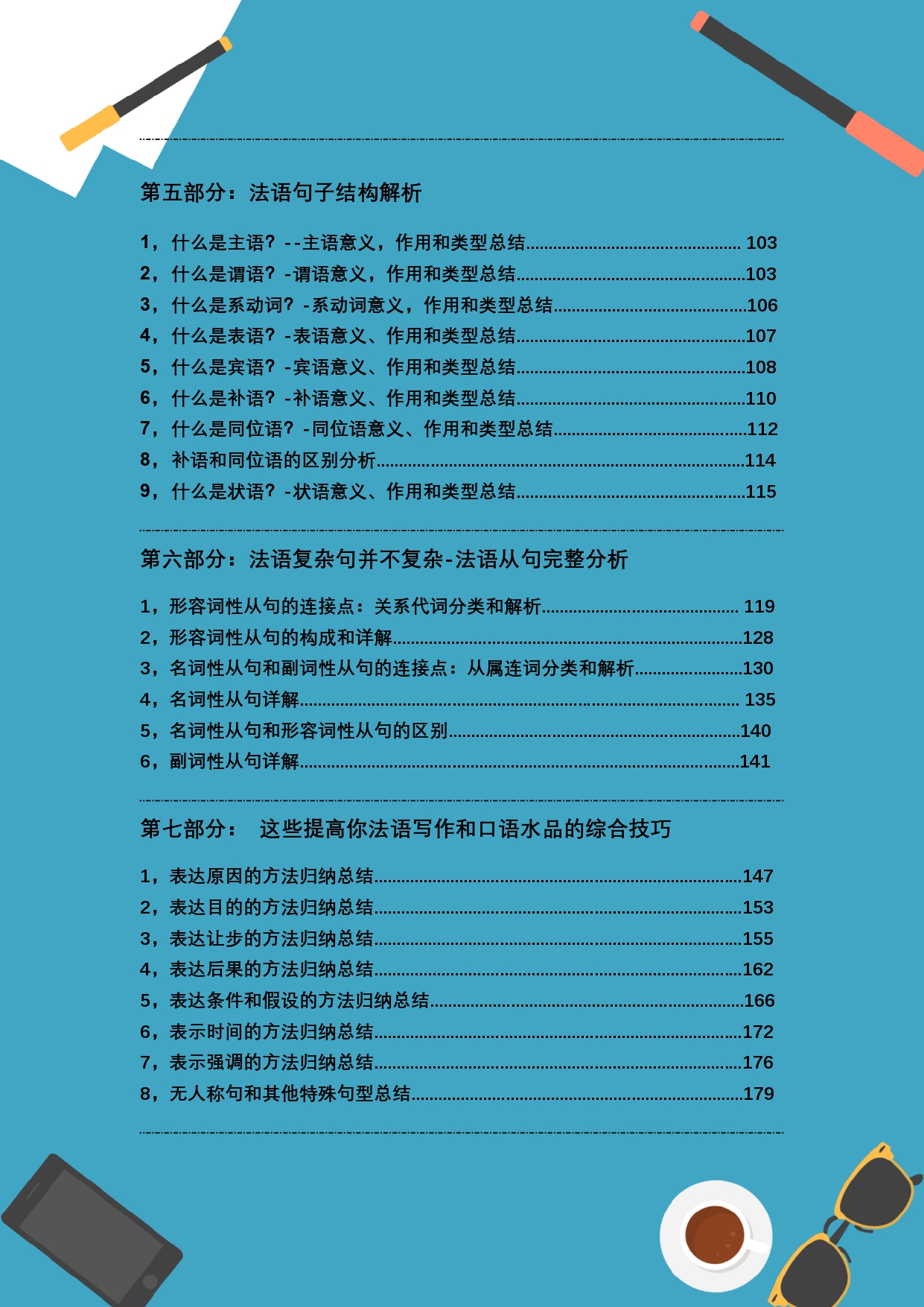 产生上述问题的很大一部分原因,是没有真正掌握法语的语法。 尽管最近有一些类似“学一门语言不要太纠结于语法”的说法,但作为一名学习法语超过10年的法语学习者,我始终认为,语法对于非法语母语的学习者来说是一定要掌握好的必不可少的部分,因为无论词汇,口语、写作、听力和阅读,最终都是建立在语法上。但在学习过程中,很多朋友们常常会感到感觉法语语法太复杂繁琐,因为没有一个好的语法基础而对法语学习失去信心和动力。法语作为世界上除英语外最广泛被使用的国际语言,掌握它会给我们的职业生涯和个人发展带来很大优势。因为法语的语法太繁琐而失去学习这门语言的热情和动力是一件很遗憾的事情。于是我想写一本专注于法语语法的书,通过这本书来帮助更多正在学习法语的朋友们能更高效地学习法语语法。我希望让大家明白:法语语法的系统性极高,是有规律可循的,只要有一个正确地方法进行归纳和解析,学习法语将会是一件令人很有成就感的事情。把语法学好,写作,听力,阅读和口语都会随之提高。