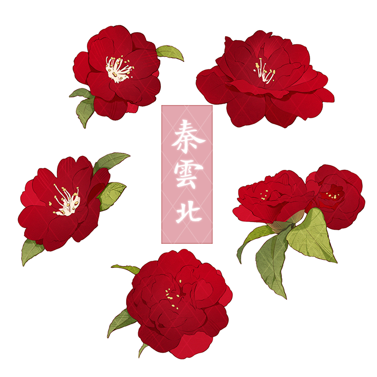 红色山茶花笔刷,内含5种姿态的山茶花花朵,适合自然花朵装饰、背景、空镜、服装装饰等方面的使用。