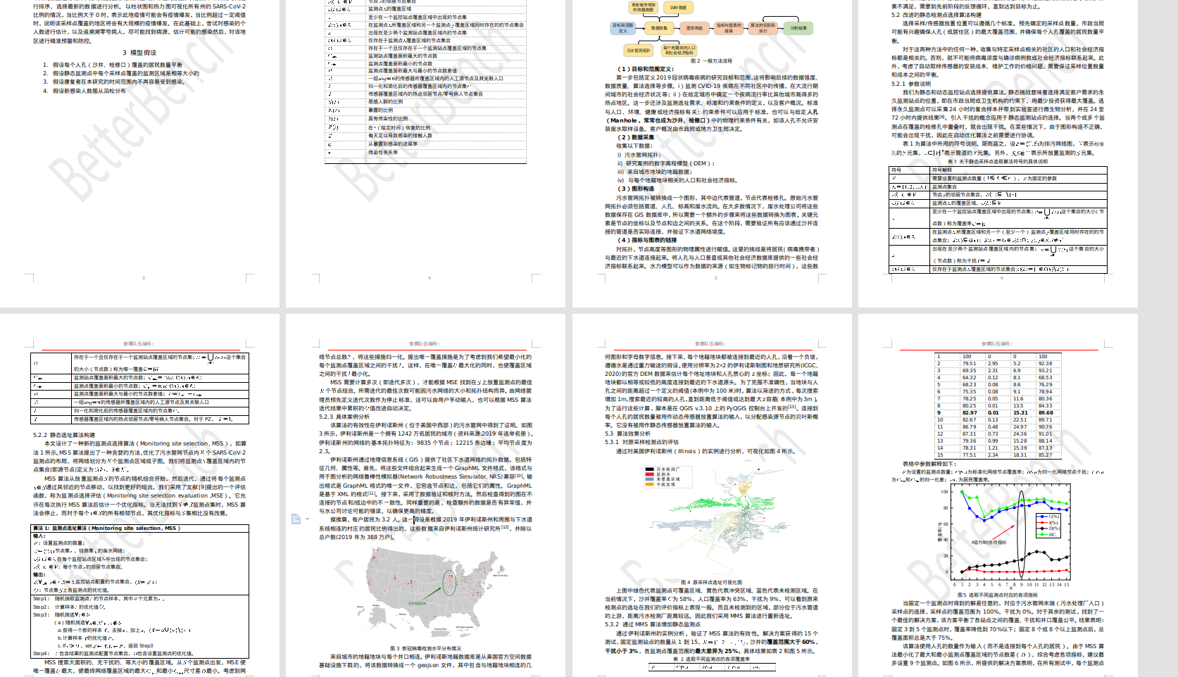 针对问题一,为了评价采样点的分布是否合理,我们对所有的采样点计算了区域覆盖率和干扰率,以最大区域覆盖和最小干扰作为分布合理的评价指标,通过动态调整采样点数量,对比分析,得出当前采样点的存在不合理性。为了增加采样点。本文提出一种基于贪婪的静态选址MSS的方法,这是一种高空间分辨率SARS-CoV-2监测的静态监测点选择算法,该算法优化了污水管网节点内多个SARS-CoV-2监测点的布局,将整个州划分为多个监测点覆盖区域,从初始的沙井覆盖率为58%,人口覆盖率为63%,干扰为13%。降低到沙井覆盖率为82.97%,人口覆盖率为89.68%,干扰为3%。