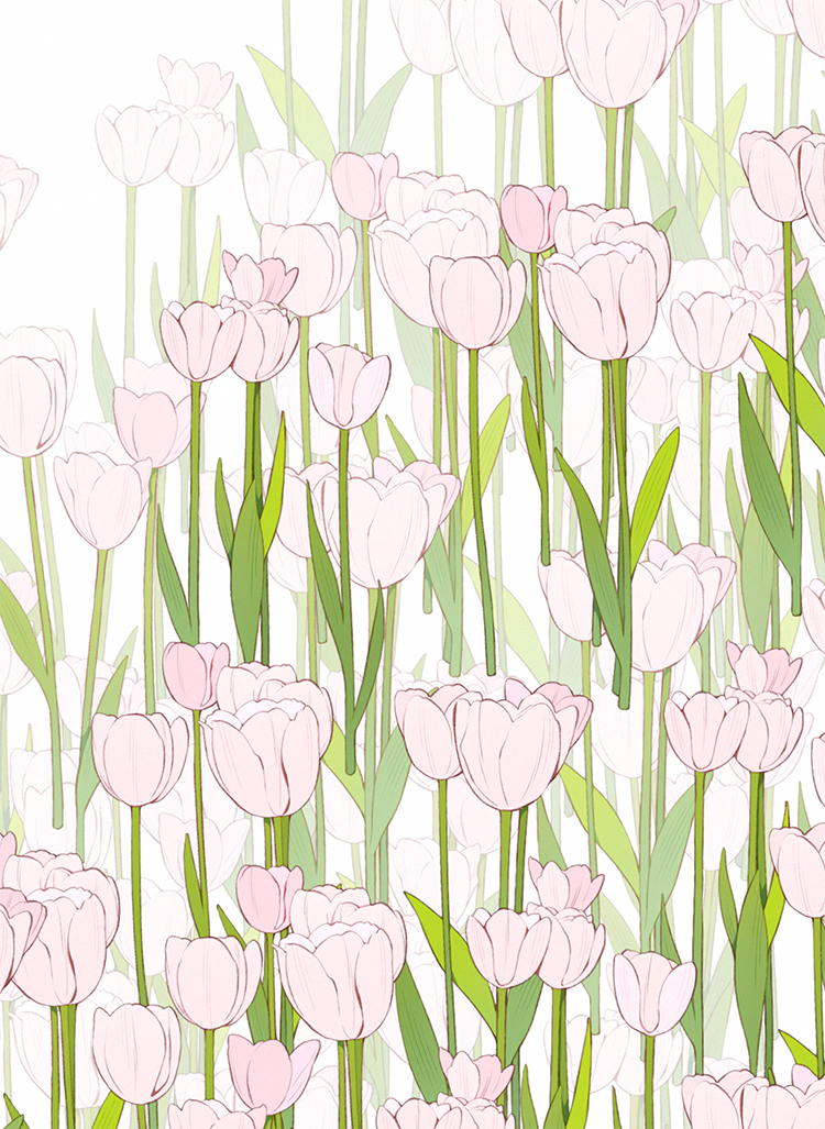 包含4簇郁金香花朵的笔刷,可以一笔刷出粉色郁金香花田。