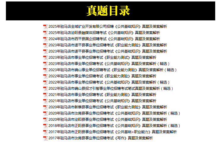 2017年-2025年驻马店市事业单位招聘考试笔试真题19套