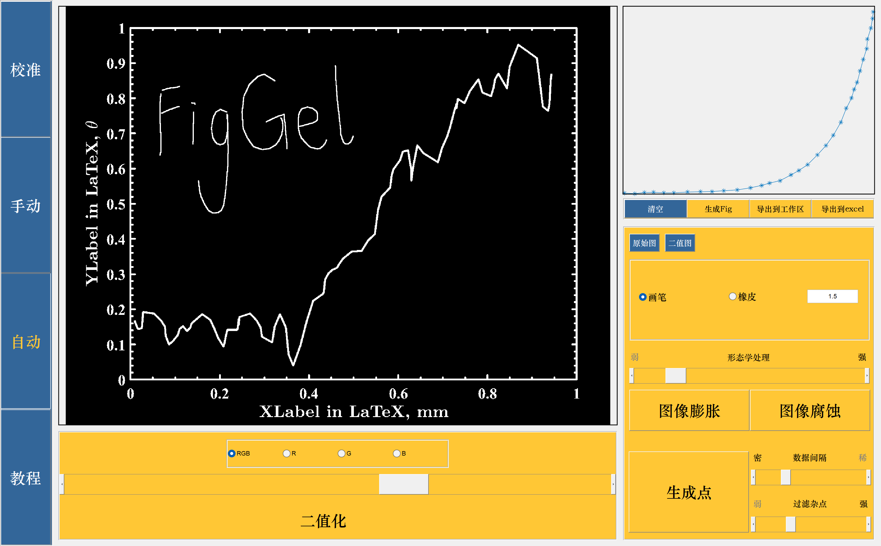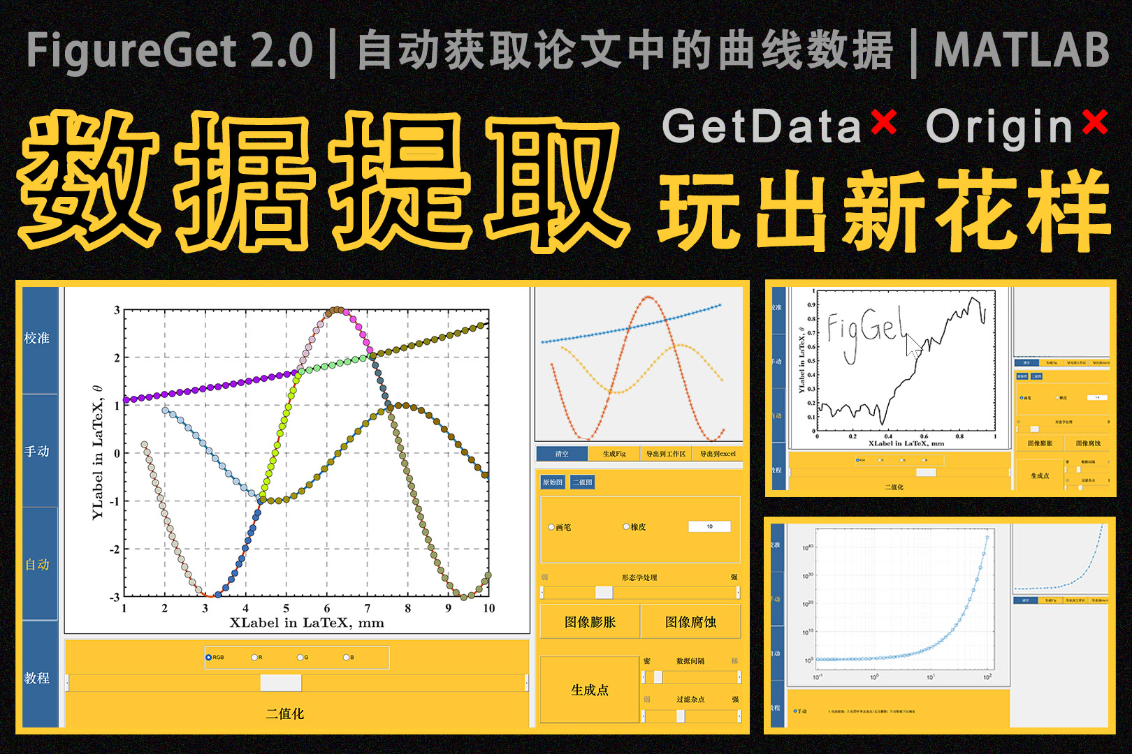 - FigGet是高效的数据提取工具,可快速识别多组曲线;含有形态学处理方法对图像进行全局修饰;内置画笔与橡皮工具进行像素级的细致处理,大大增强曲线识别能力...更多功能正在路上。