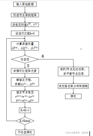 基于牛顿-拉夫逊法的潮流计算程序流程图如图所示。