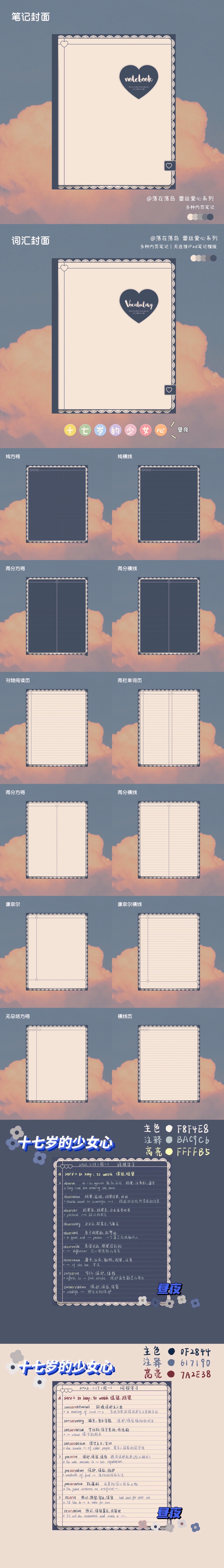 一本!十七岁的少女心-昼夜|双色多种内页|电子手帐笔记iPad模版落在落岛