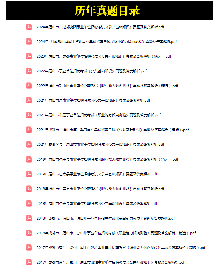 2017年-2024年眉山市事业单位招聘考试笔试真题17套