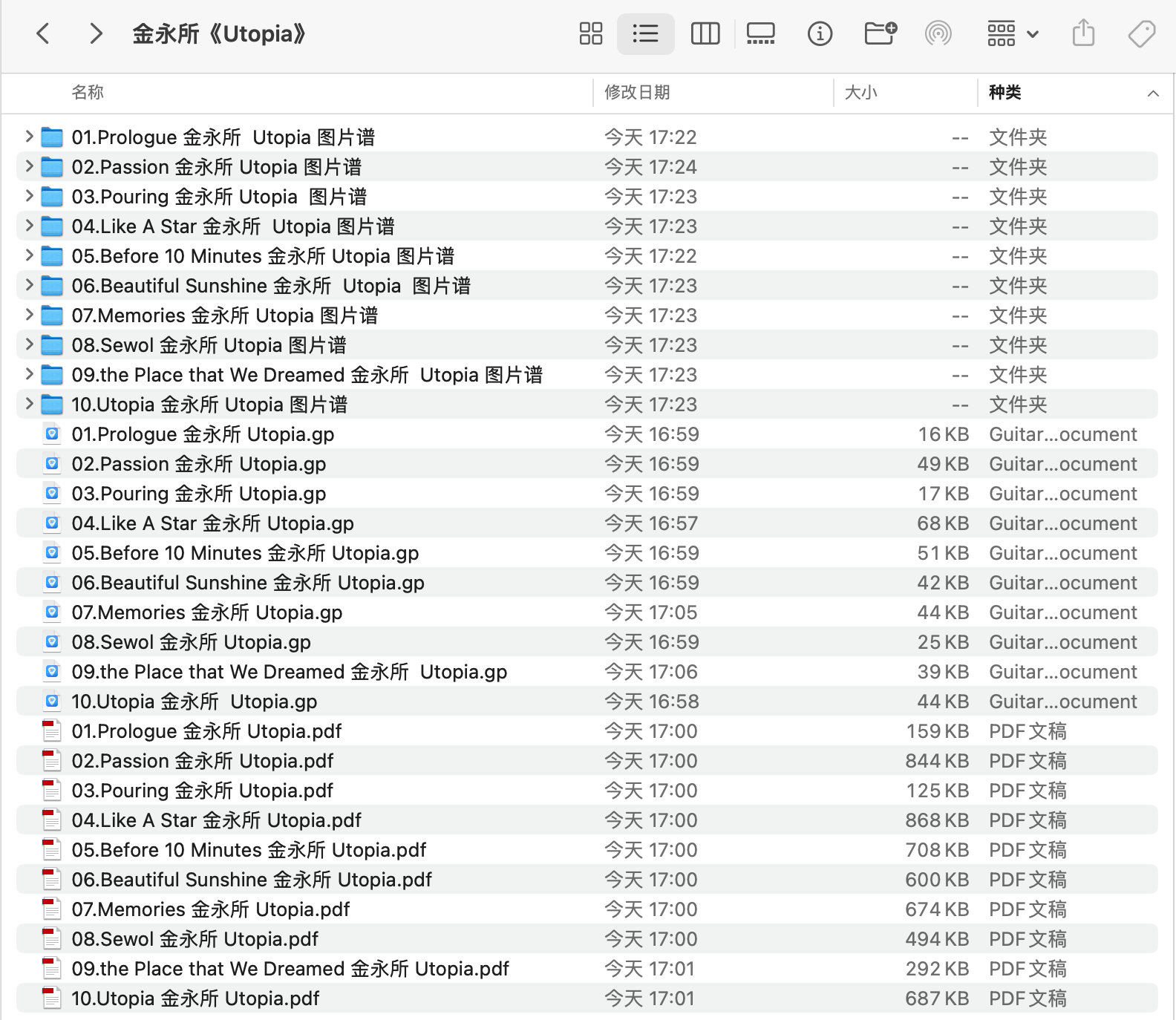 于是我第一时间制作了整专的曲谱,本曲谱集均以录音室版10首吉他曲(不包含最后的钢琴版Like A Star)为范本,一比一扒制完成,精确到每一秒。希望自己的精心制作对得起小所的专辑,也对得起大家的信任。